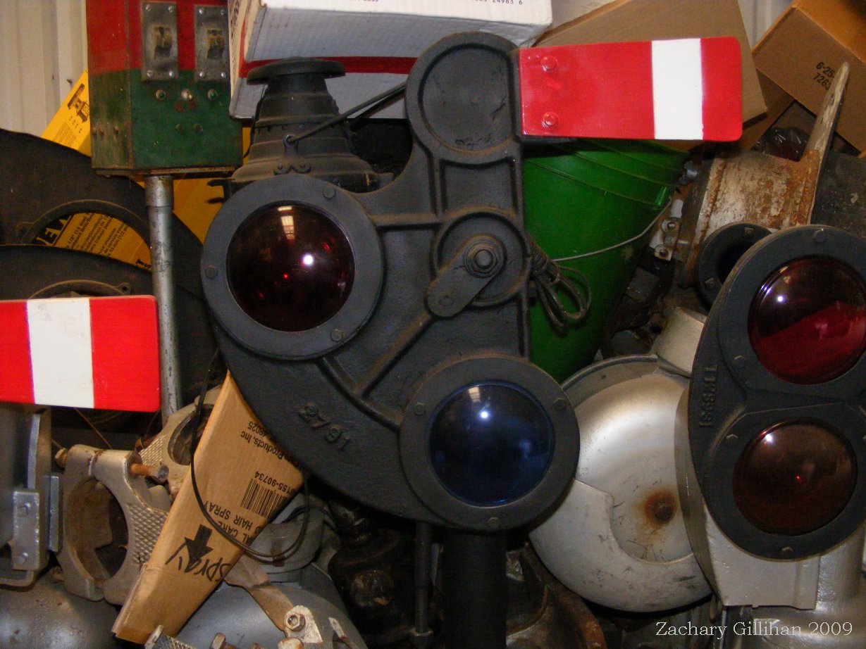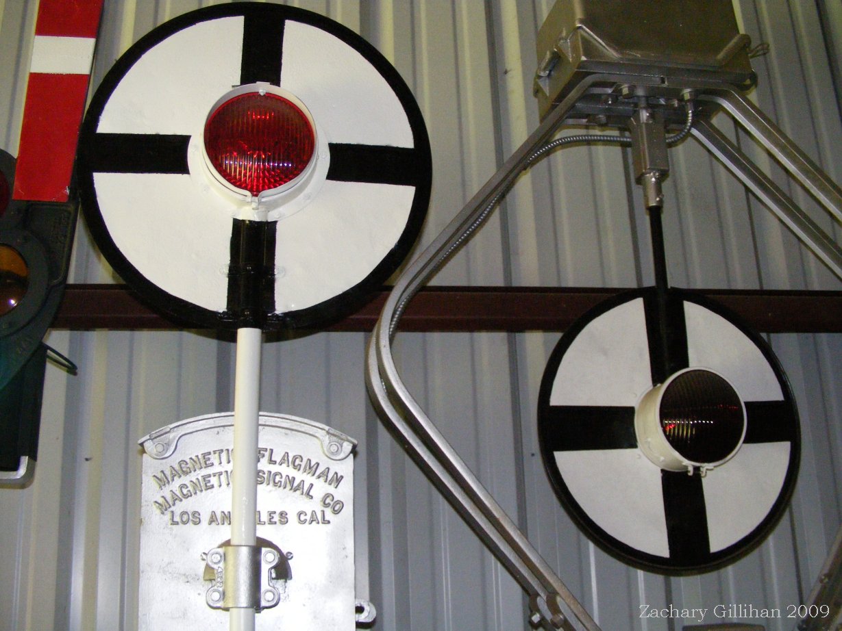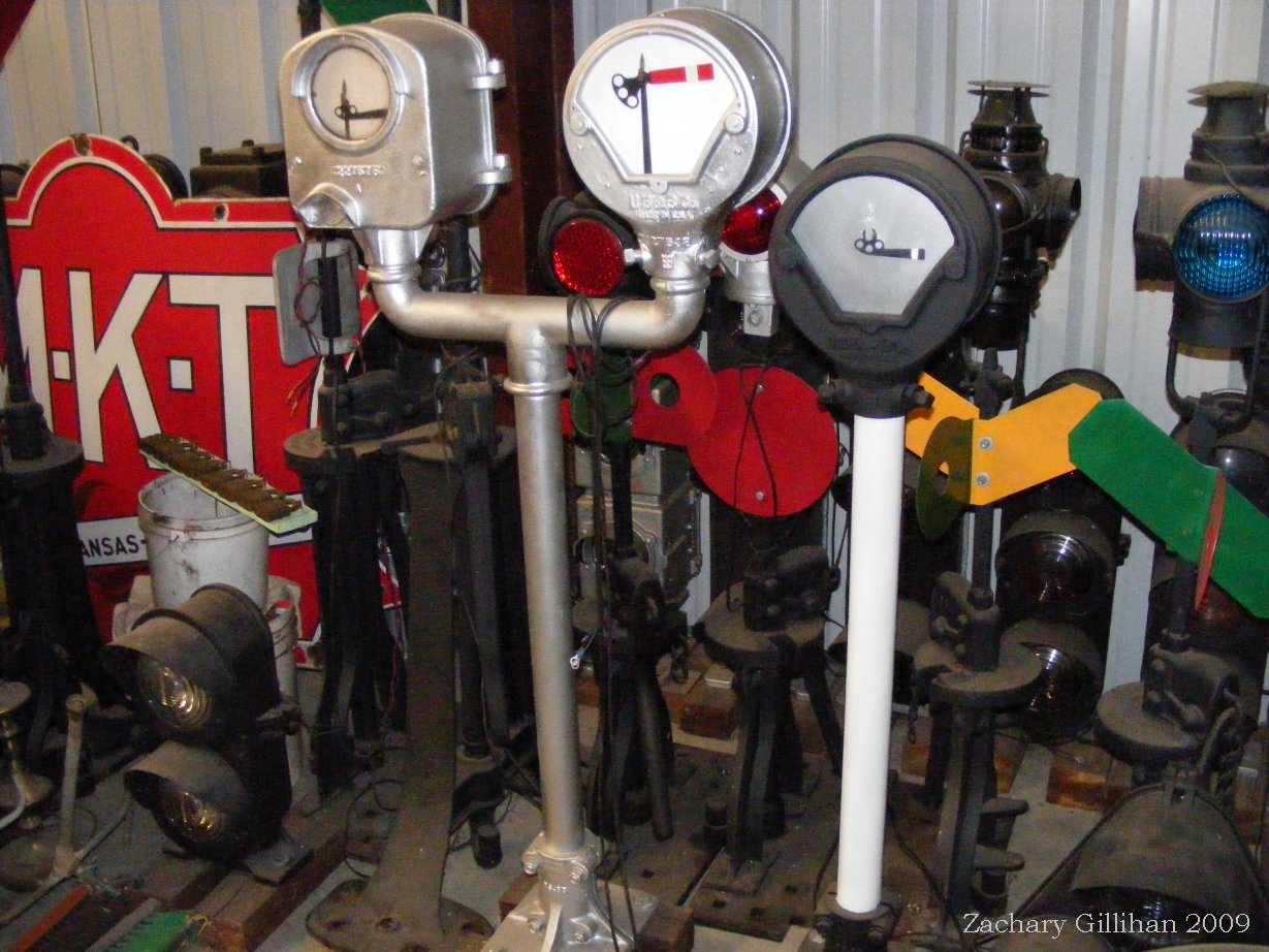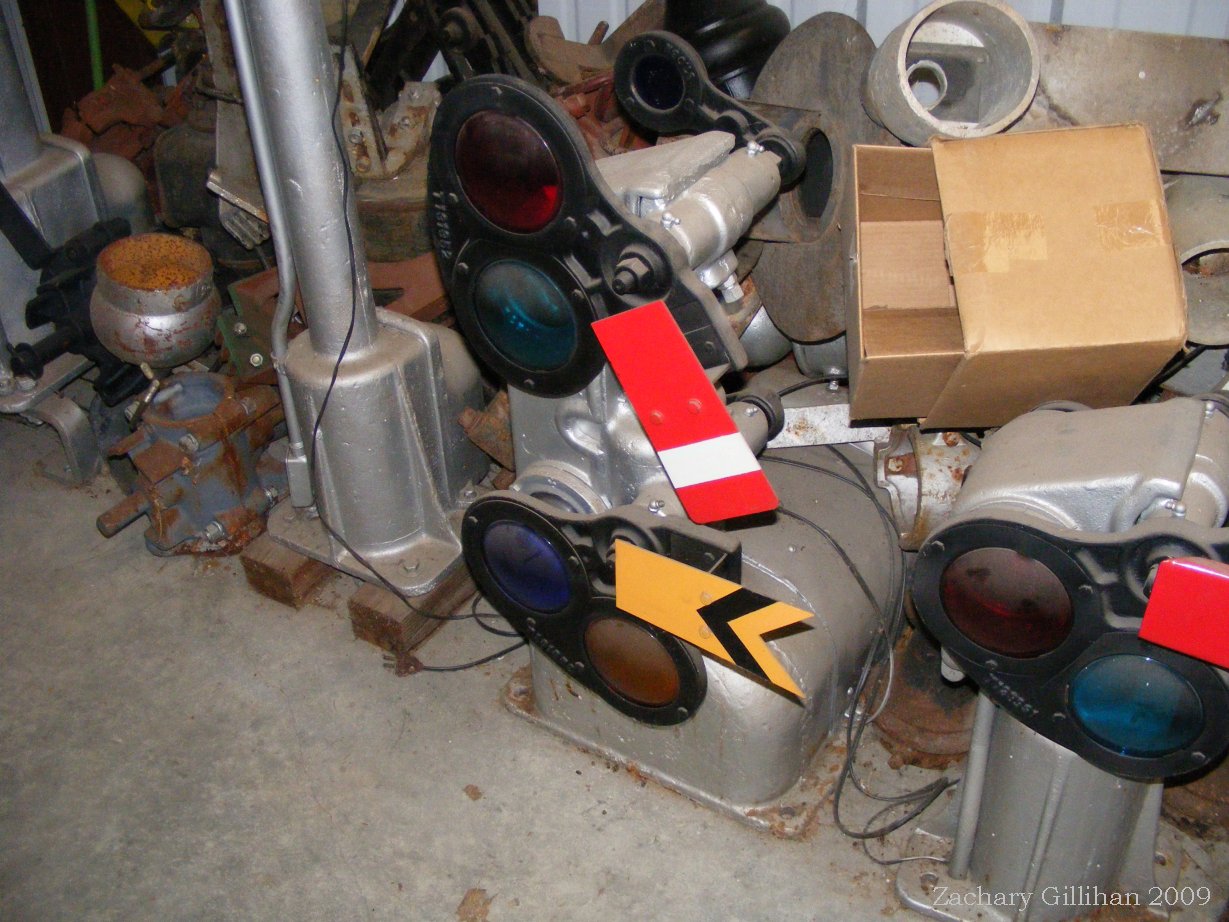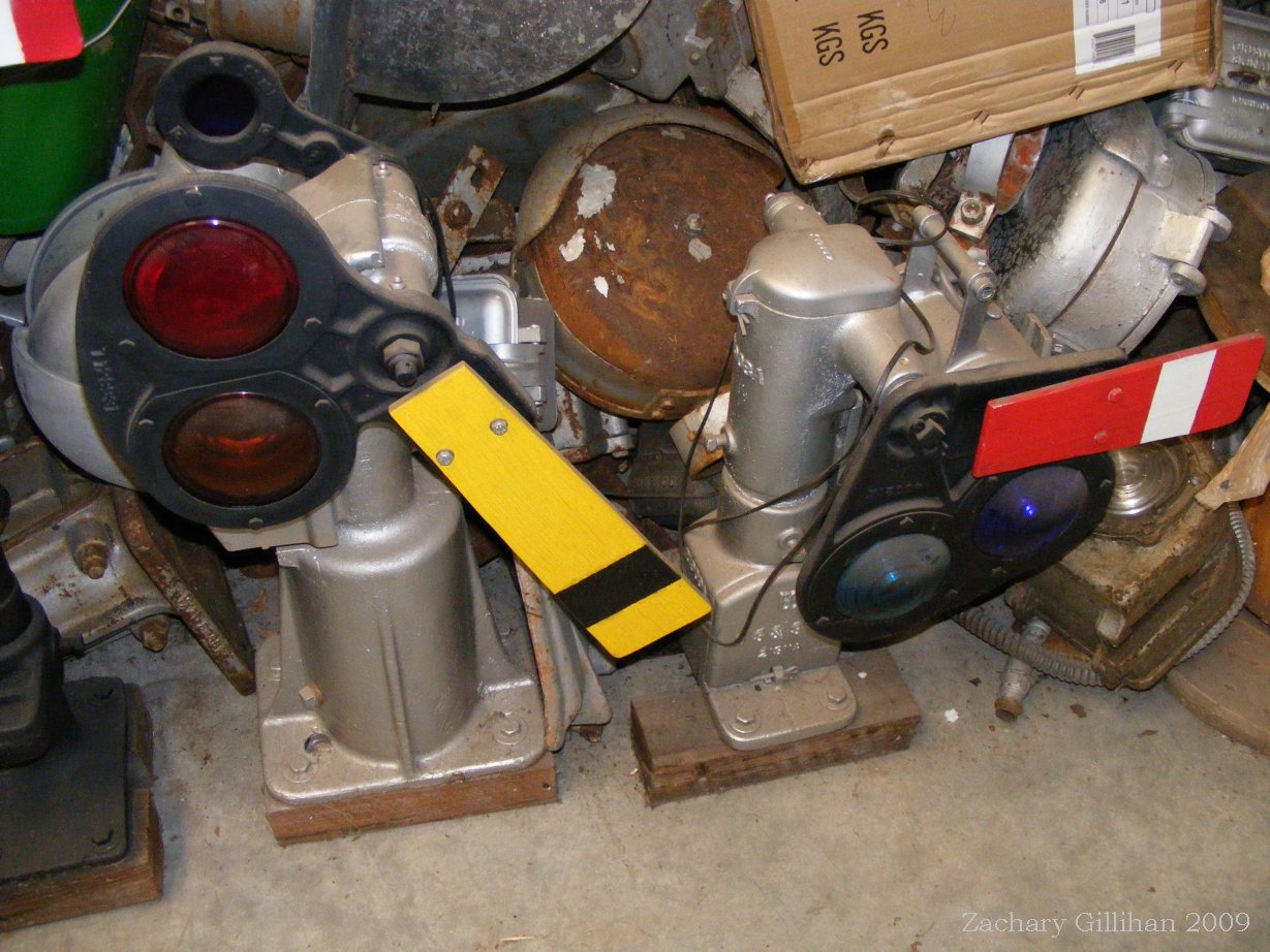 The signal to the left is a US&S Co pnuematic lower quadrant dwarf semaphore off the Chicago Transit Authority. The signal on the right is a dwarf mechanical semaphore off the old New York, New Haven & Hartford railroad and is a George Stiles Co dwarf semaphore. |