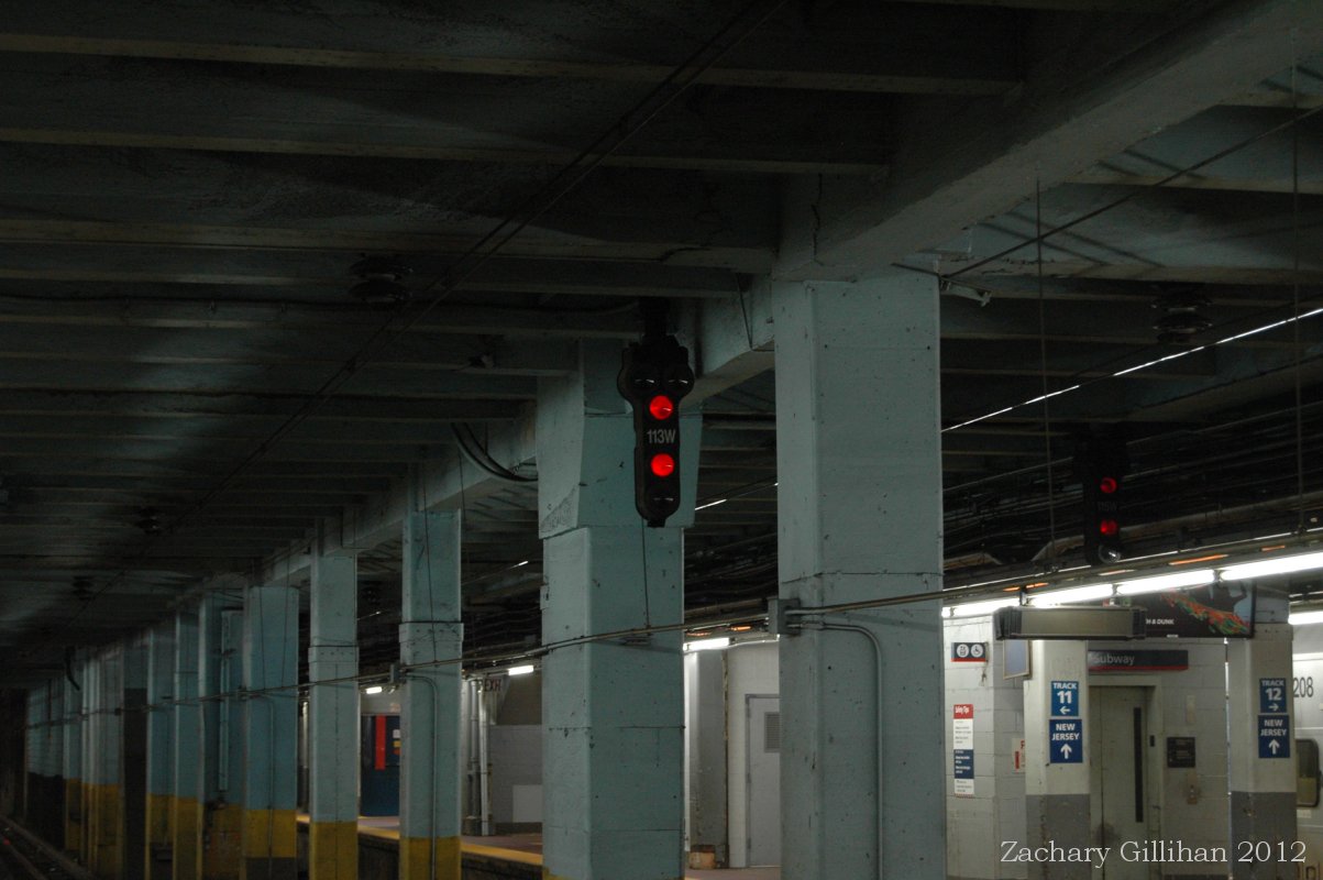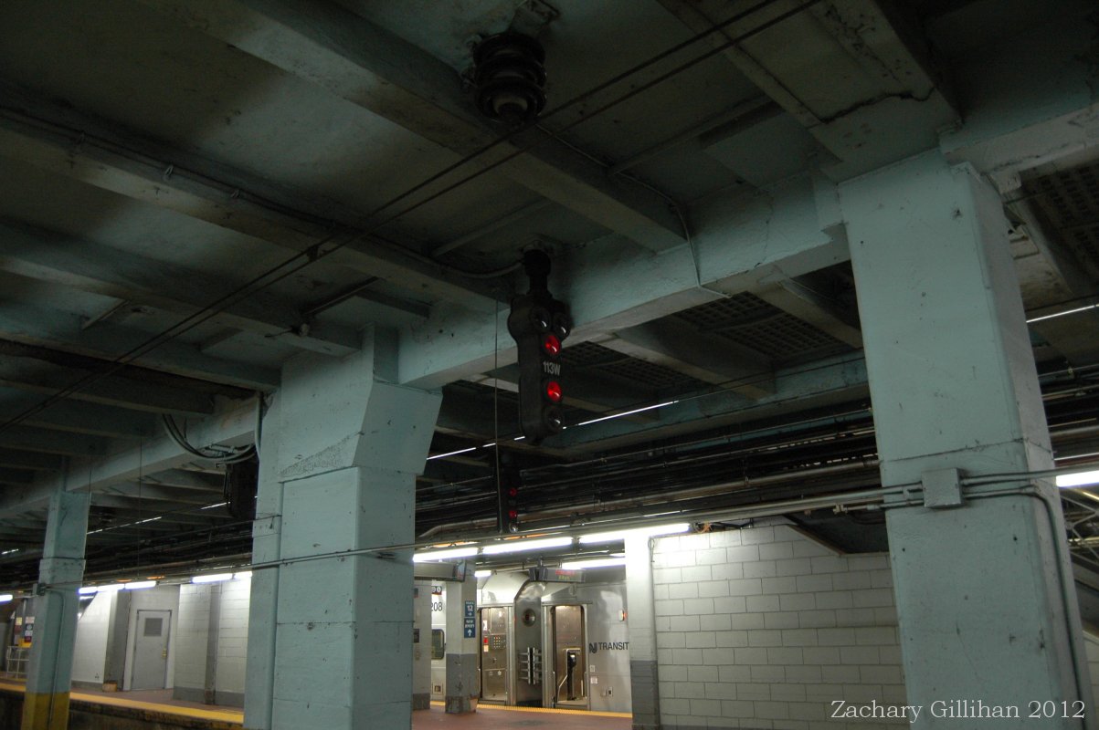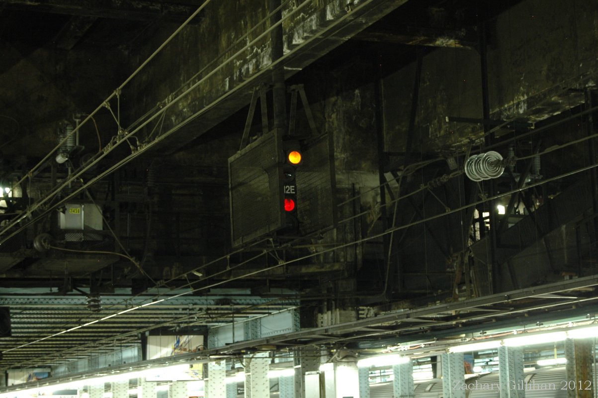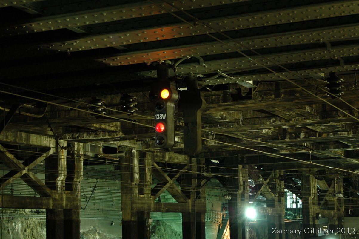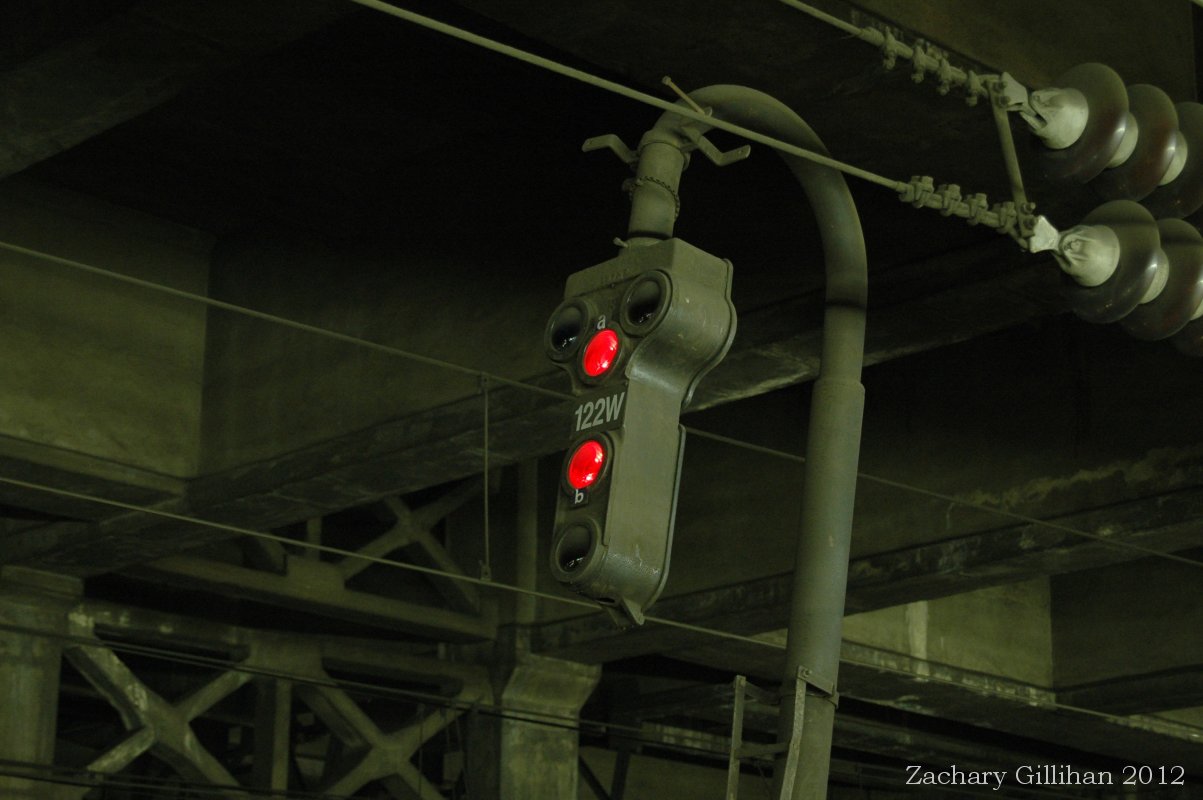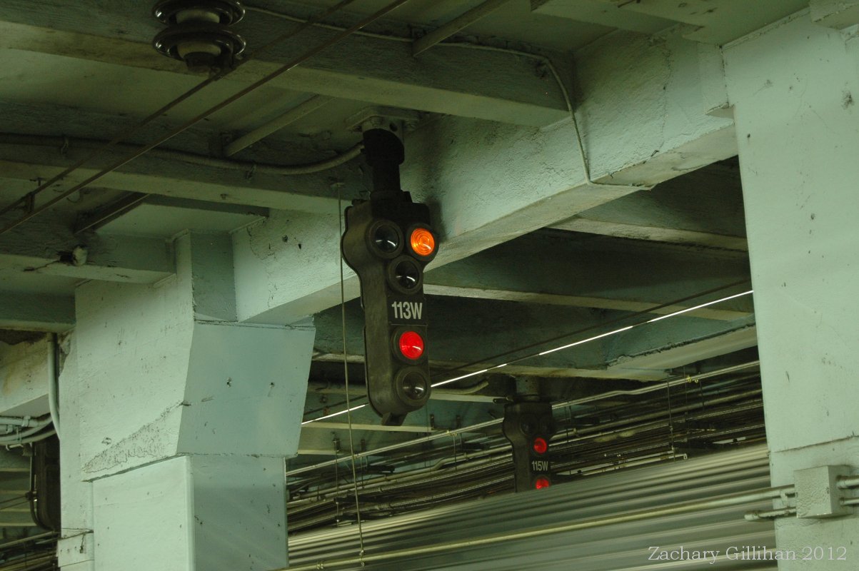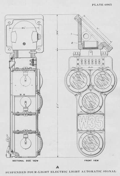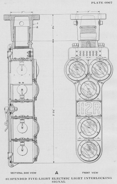 New York City's Pennsylvania Station hosts colorlight signals that are suspended from the ceilings of the terminals. These signals manufactured by Union Switch and Signal Company of Swissvale Pennsylvania are only known to be used in a few terminals. The signals appear in the Union Switch and Signal Company's 1909; Electro-Pneumatic Catalogue Volume 2 and is not in any other US&S Catalog. The signals were installed prior to the terminals completion in 1910 have survived over 100 years, today several of the signals have been replaced by new Safetran signals. The Safetran signals are custom to fit the size and style of the older US&S style colorlights. In 1909 these colorlight signals cost $64.00 for a 4 light and $74.00 for a 5 light. Signal Left: Plate 0965 Suspended Four Light Automatic Signal Signal Right: Plate 0967 Suspended Five Light Interlocking Signal Signal Aspects: Red over Red: Stop Yellow over Red: Approach Green over Red: Clear Red over Yellow: Restricting |