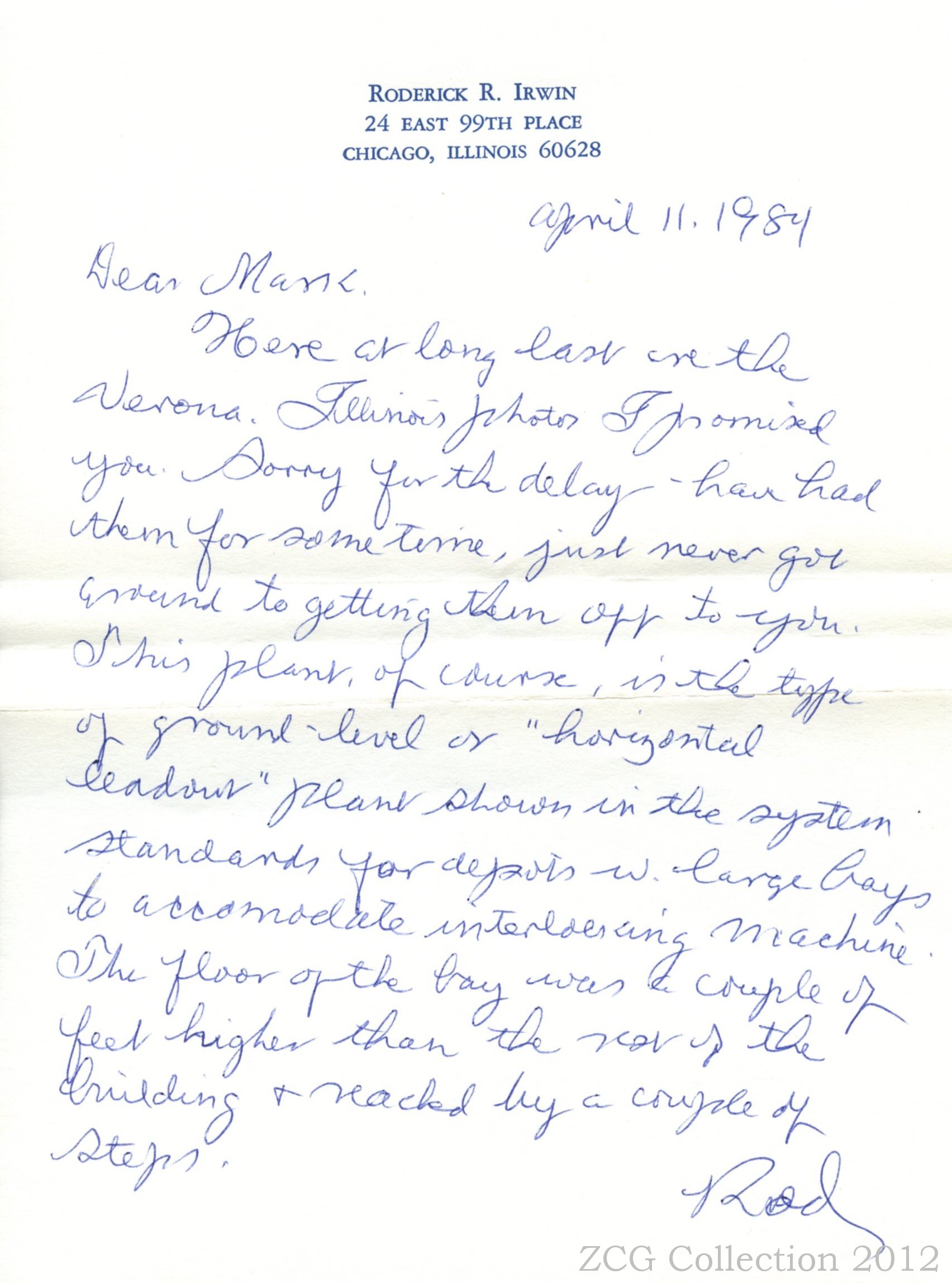 The images below where taken at the Santa Fe Depot in Verona Illinois by Roderick Irwin of Chicago Illinois. Roderick was said to have lost a few fingers in a chemistry accident while he was attending the University of Illinois. After the accident he dropped out of college and taught himself morse code to keep him busy. He later became a telegraph oerator for the railroad. Roderick was a operator at the Verona Depot, he took these series of photos and wrote the letter to Mark S.