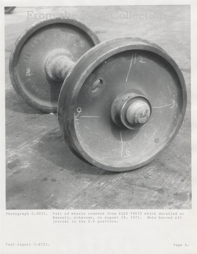 G-3071 Items: Wheel Date Taken: Note or Description: Wheel set that caused a derailment in Bassett, AK on August 19th, 1971.
