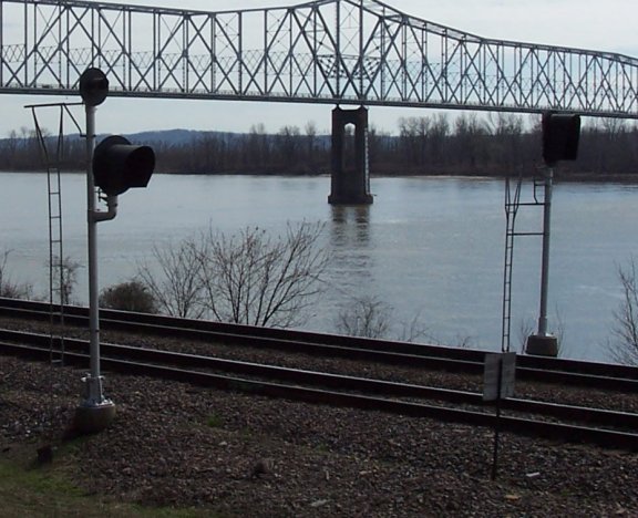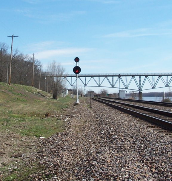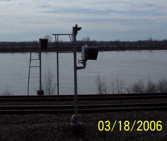 General Railway Signal Trilight Heads UP Line A side view of the signals. 3-18-2006 Chester, Illinois |