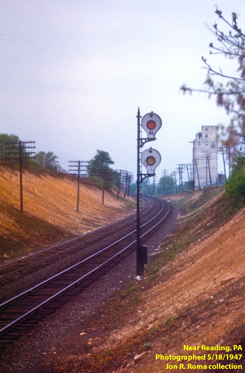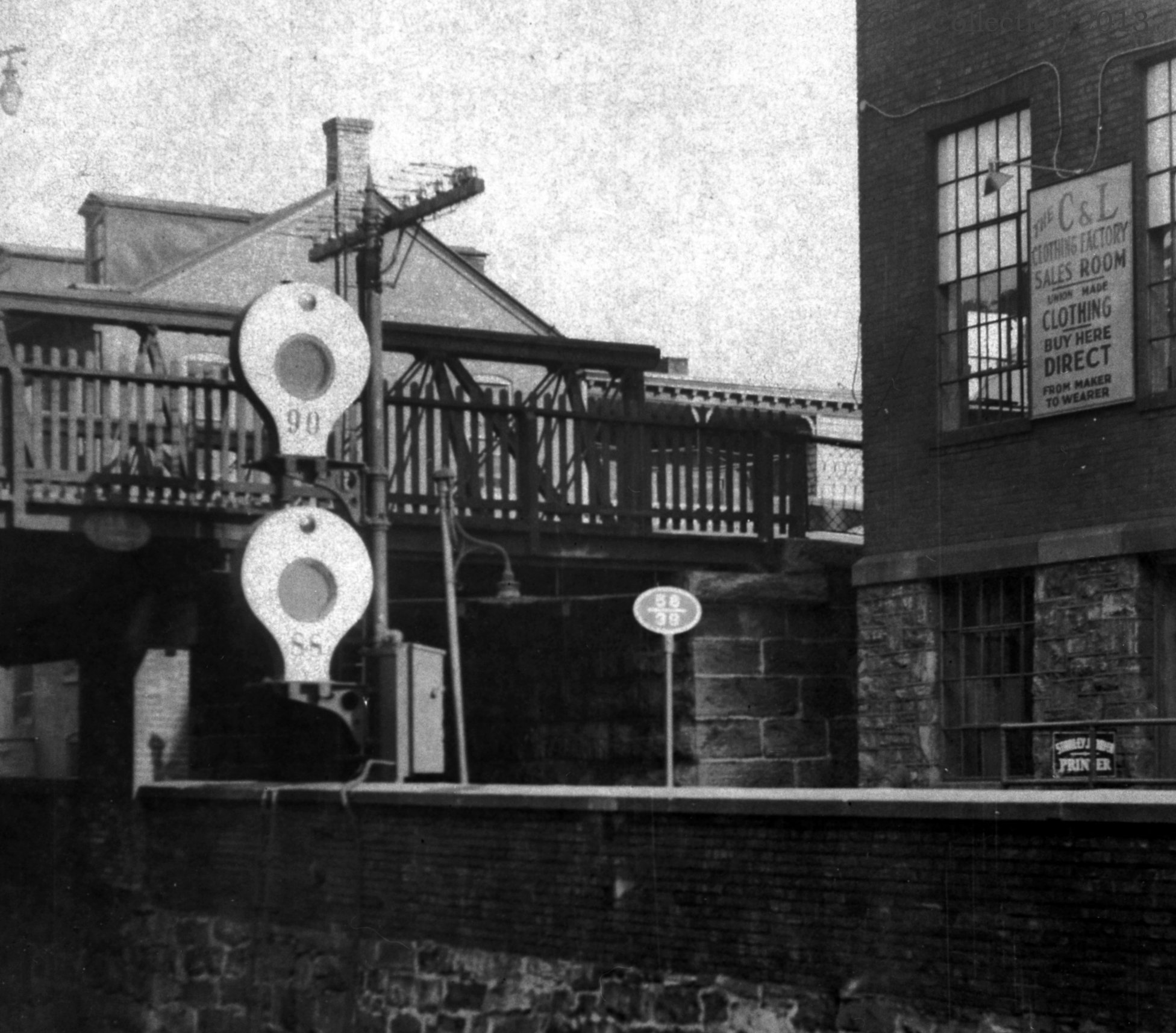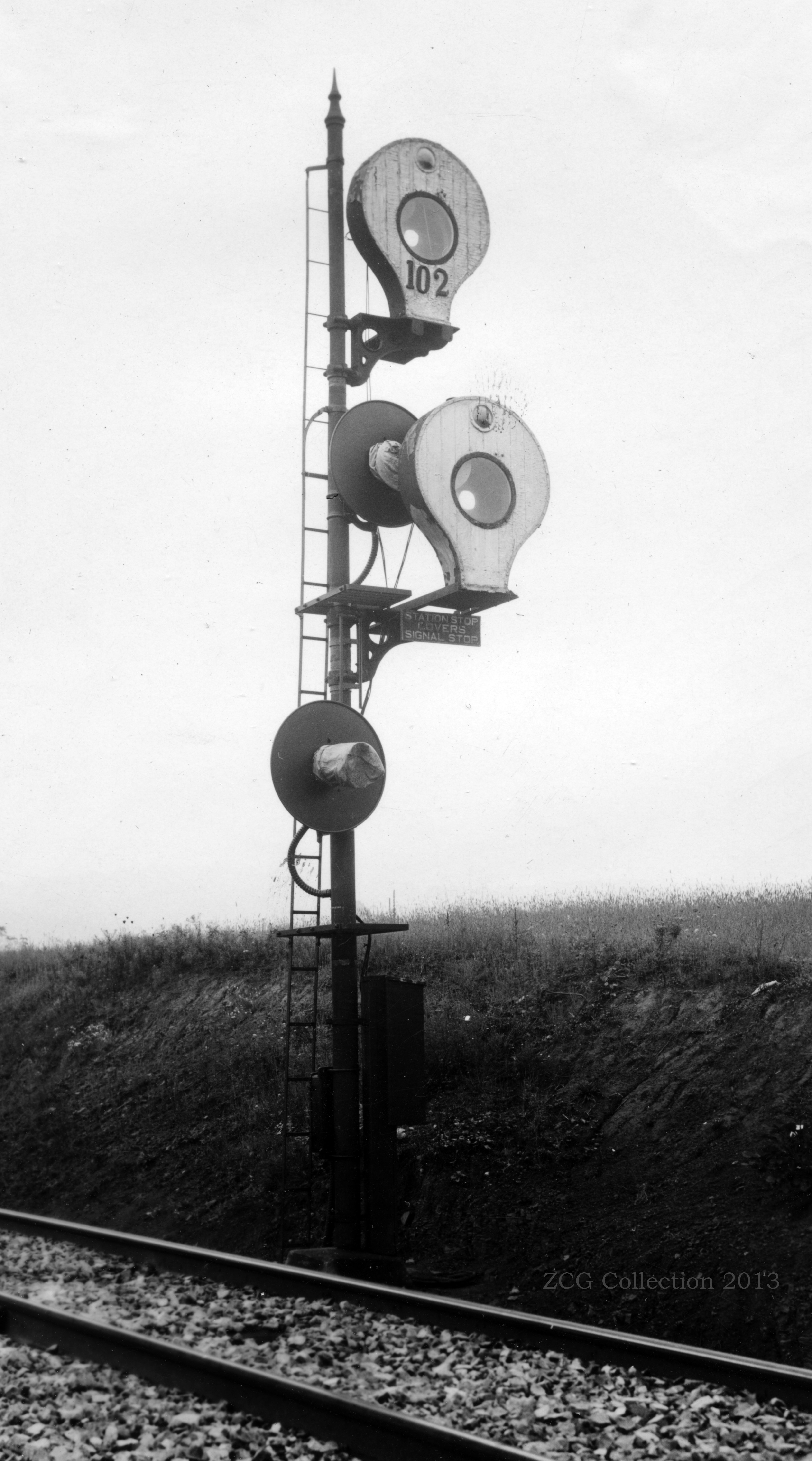 In 1869 Thomas Hall patented a two aspect electric railroad signal, it was a wood signal with a round cloth disc inside. Commonly known as the "Banjo" signal these signals quickly became the signal to use. With the invention of the track circuit in 1872 the use of the Hall Disc signals grew. The disc signals where nothing more than a wood case with a large round glass window in the front and back of the signal, A cloth disc would drop in front of the window to show caution for daytime indicaton, the disc would rise and the window would become clear to show the daytime indication of clear. A smaller round window was located above the larger and provided a night time indicaton with the same princials, a glass disc would block the window and a oil burning lantern would be attached to the back of the disc signal. At night the lamp would light the smaller disc for the indications. Since the disc signals were only able to convey two aspects, the railroads would add another signal below the top one to add another indication and another aspect. Disc signals were one of the most common signals upto the 1910's when semaphores became popular, later searchlights brought the best if the period and semaphores and disc signals were replaced. Disc signals where known to be around well into the 1950's. Some railroads retired the disc signals from block signals and turned them in to crossing signals. Left and Right: Both Images from a 1901 Hall Signal Company Catalog. |