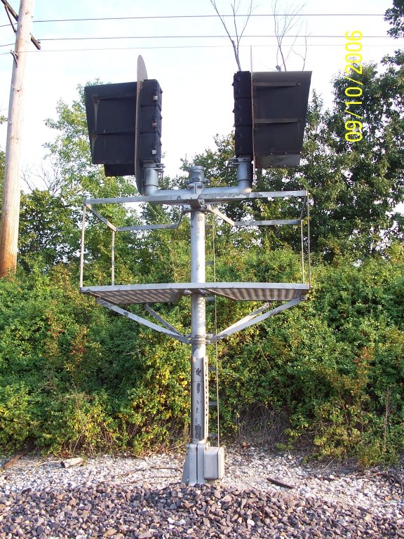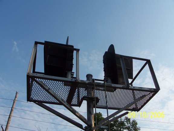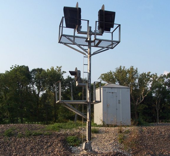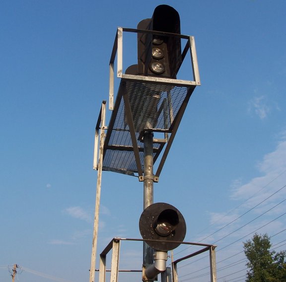 L&W Vertical Signal Heads Union Pacific Eureka, MO This is the signal closest to the street, has a yellow marker below the signal head facing East. |