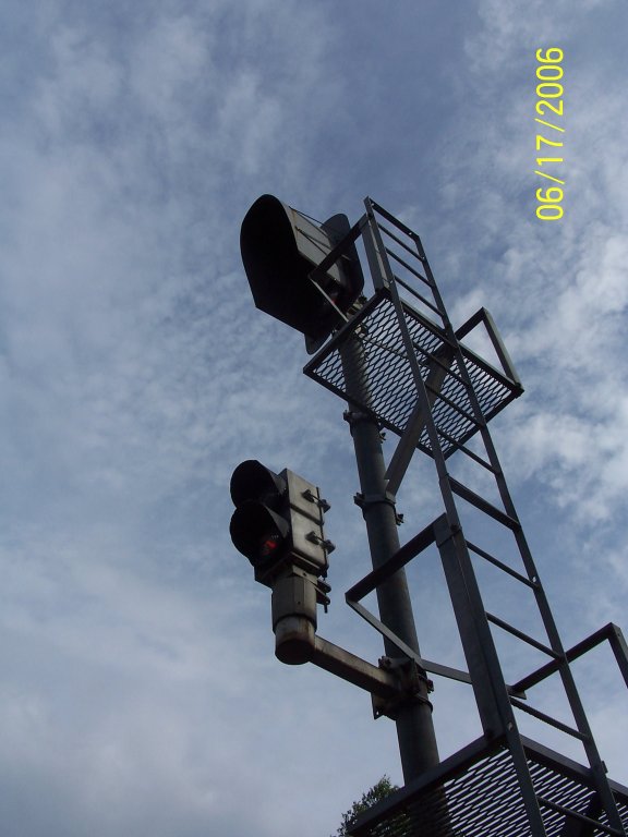 L&W Signal Heads Front of the signals, displays red over red. Wickes, MO |