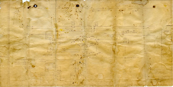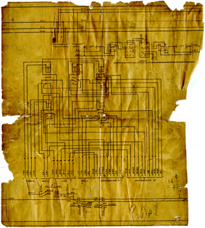 After 1991 Print showing Pole line circuits removed except for 110VAC and the track relay added with circuit inside of case.