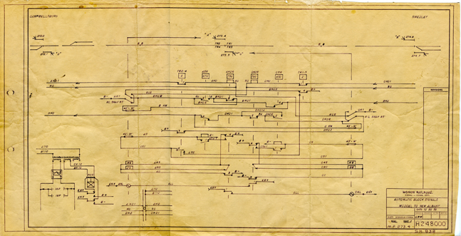 Pre 1991 Print showing the Semaphores and track circut coming from the Pole line.