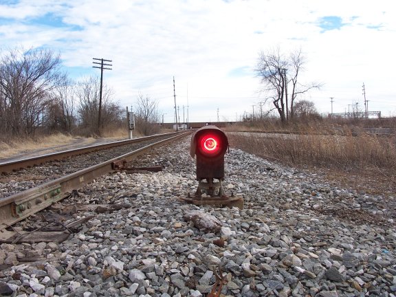 General Railway Signal Co Dwarf SA Searchlight Signal TRRA Yard, Signal Number 28 East St. Louis Illinois Displays Red for the interlocking. |