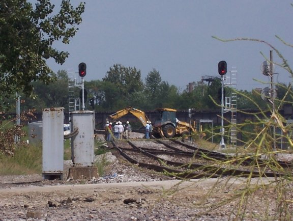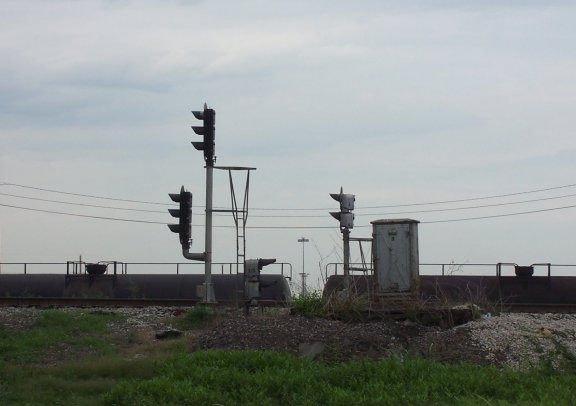 General Railway Signal Co Double Stack Dwarf SA Searchlight Signals TRRA Yard, Signal Number 225 East St. Louis Illinois YES they are removing the double stack GRS Dwarfs, luckly I bought them. |