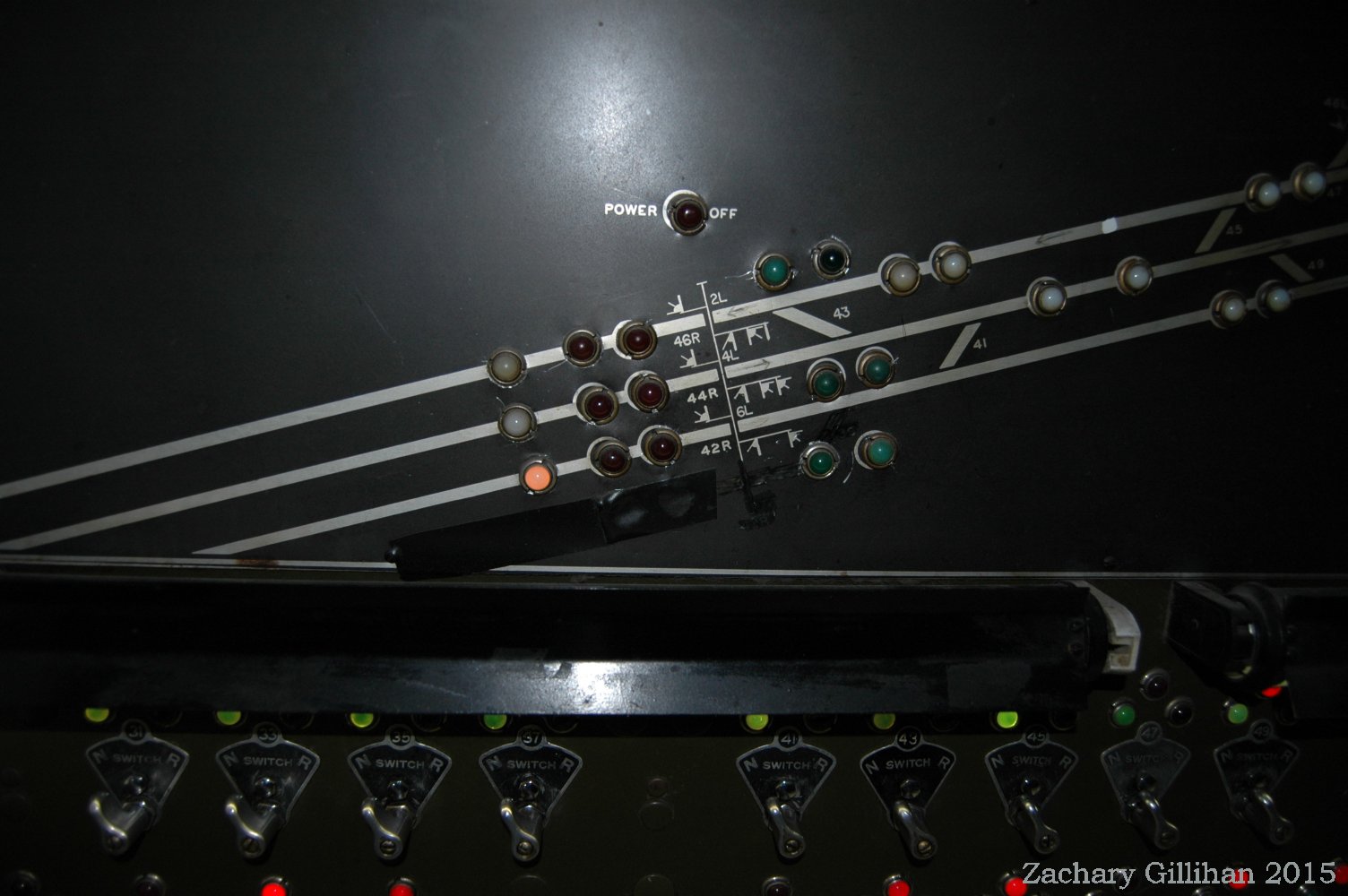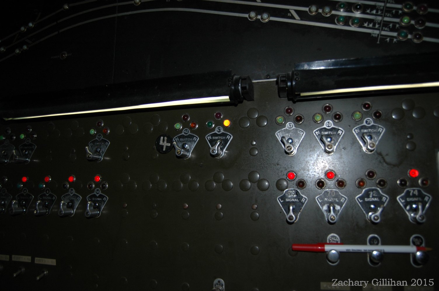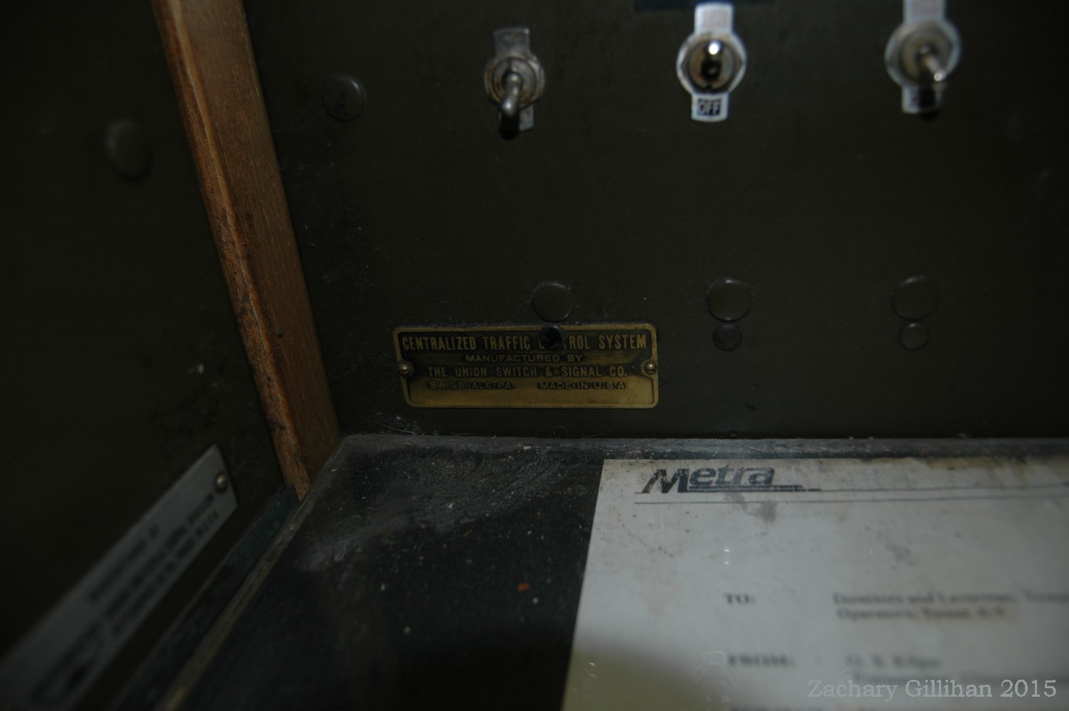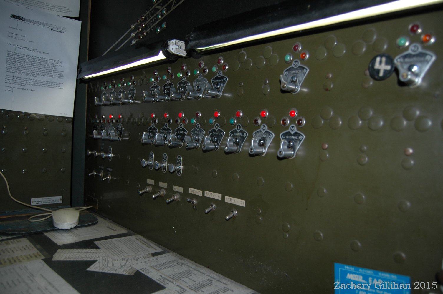 This tower housed a US&S Direct Wire CTC style panel, it was a 60" style C type. Two 30" style C cabinets were on either side but had only holes cut into them for CRT monitors showing other interlockings.