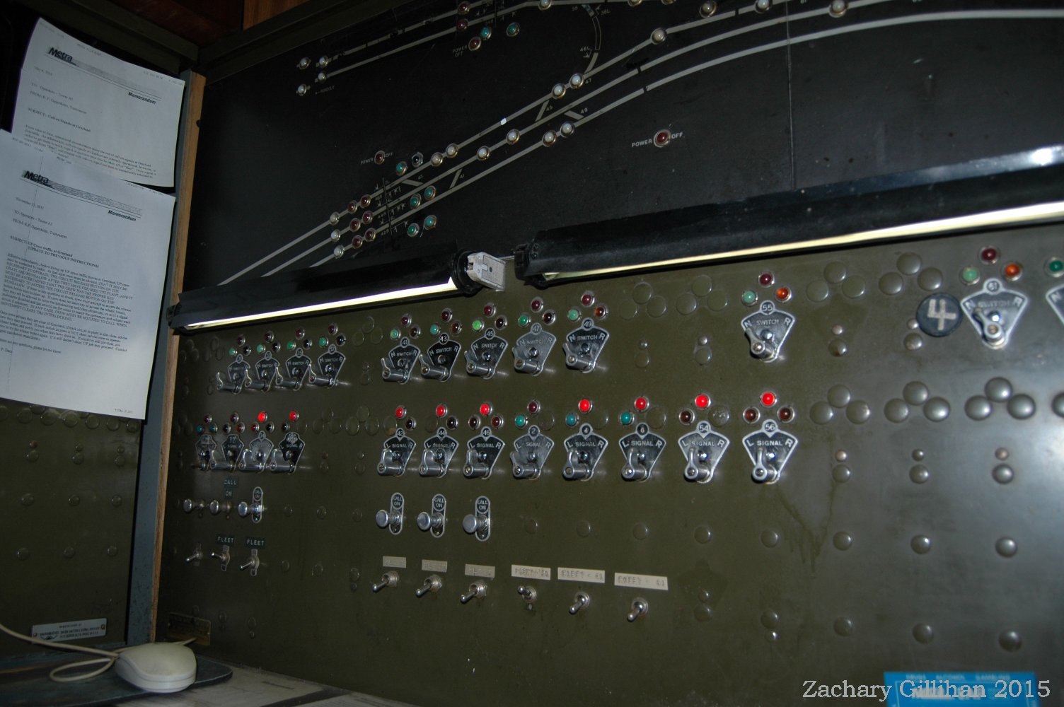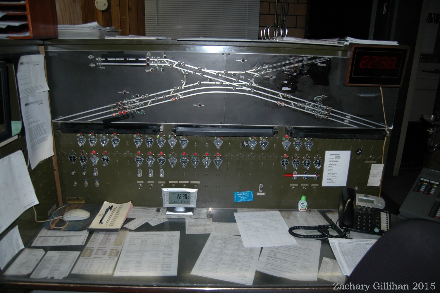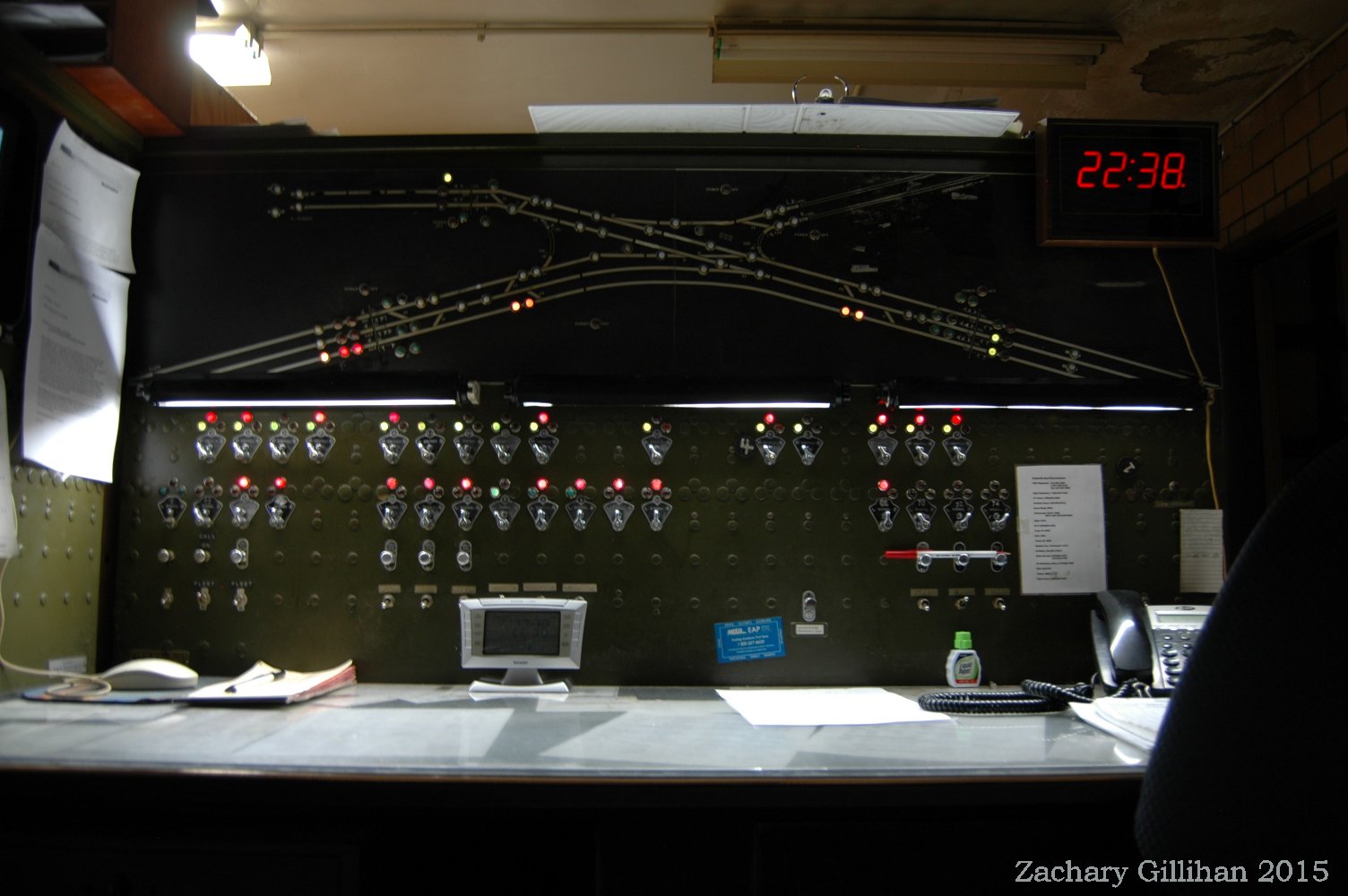 This tower housed a US&S Direct Wire CTC style panel, it was a 60" style C type. Two 30" style C cabinets were on either side but had only holes cut into them for CRT monitors showing other interlockings.