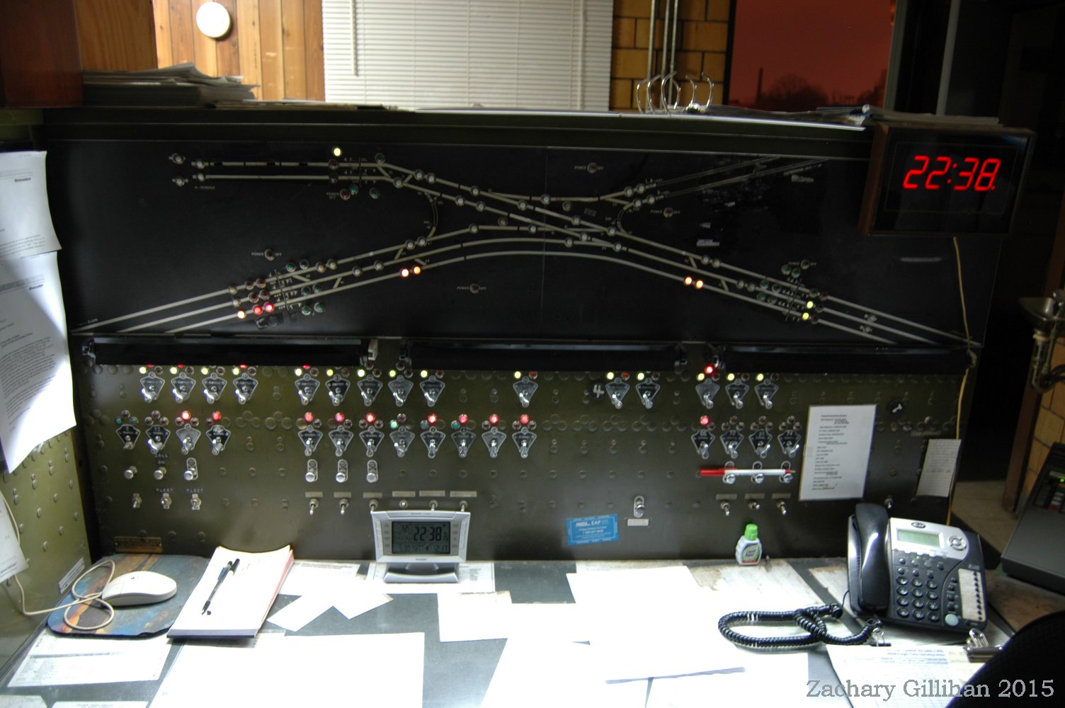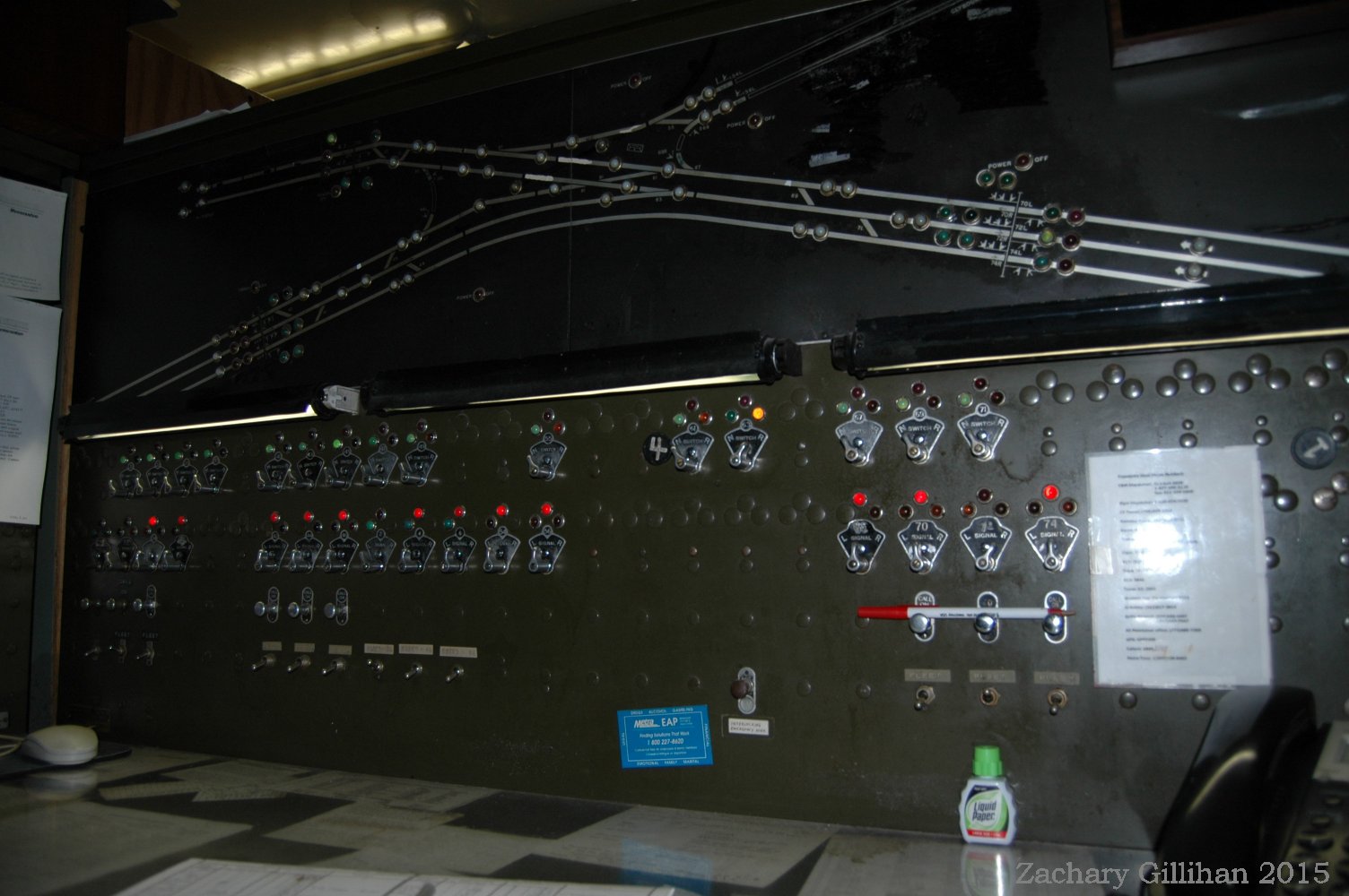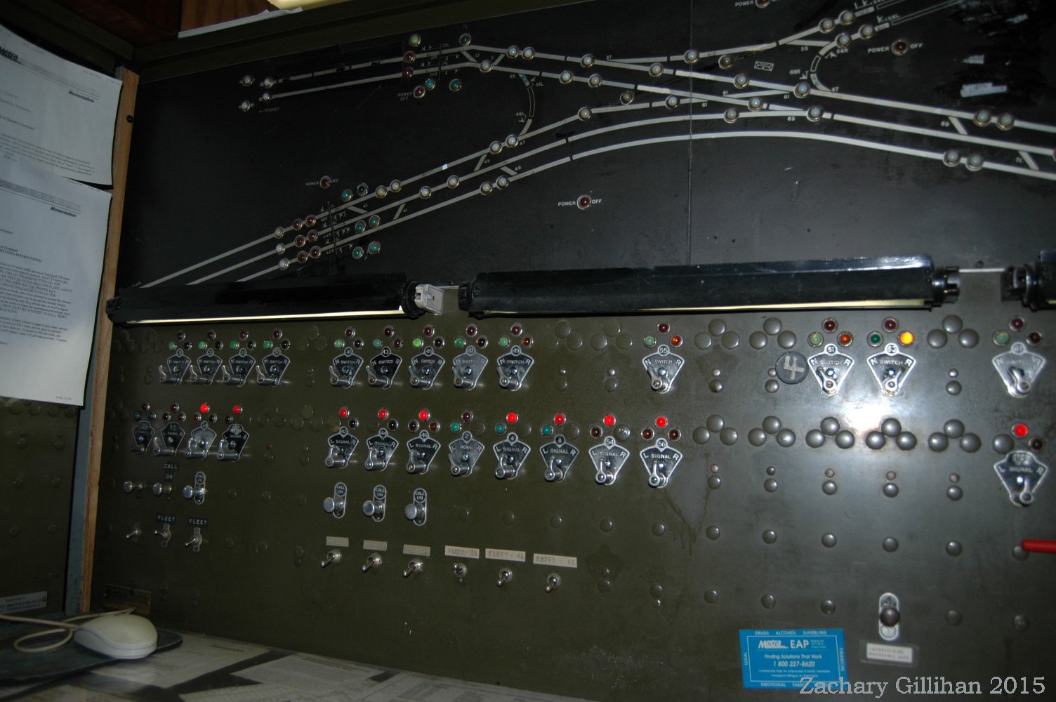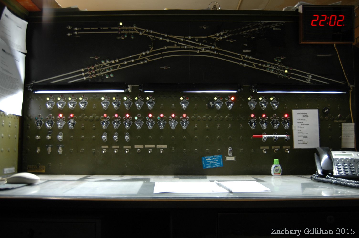 This tower housed a US&S Direct Wire CTC style panel, it was a 60" style C type. Two 30" style C cabinets were on either side but had only holes cut into them for CRT monitors showing other interlockings.
