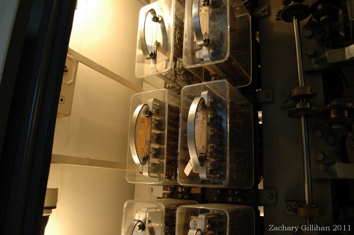 Left: Cabinet of Sequence Switches. Right: Close-up view of Sequence Switch |