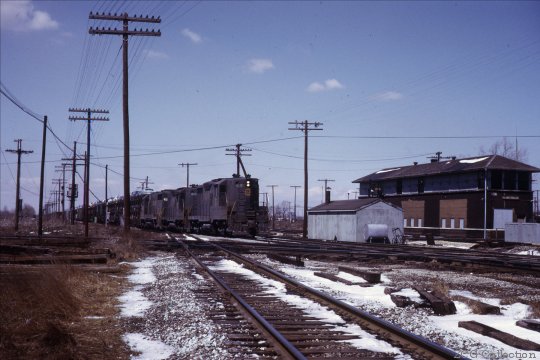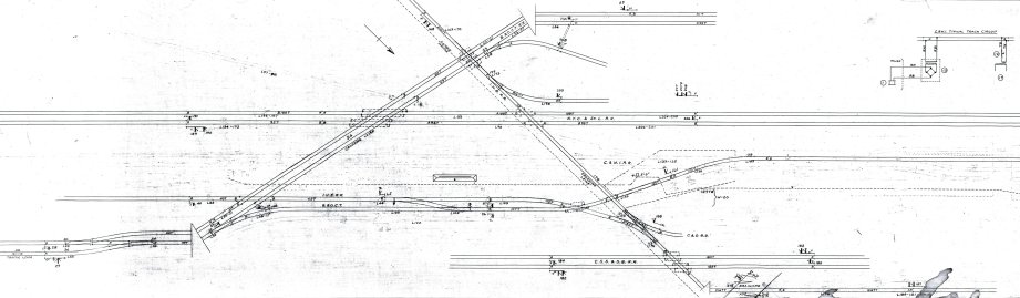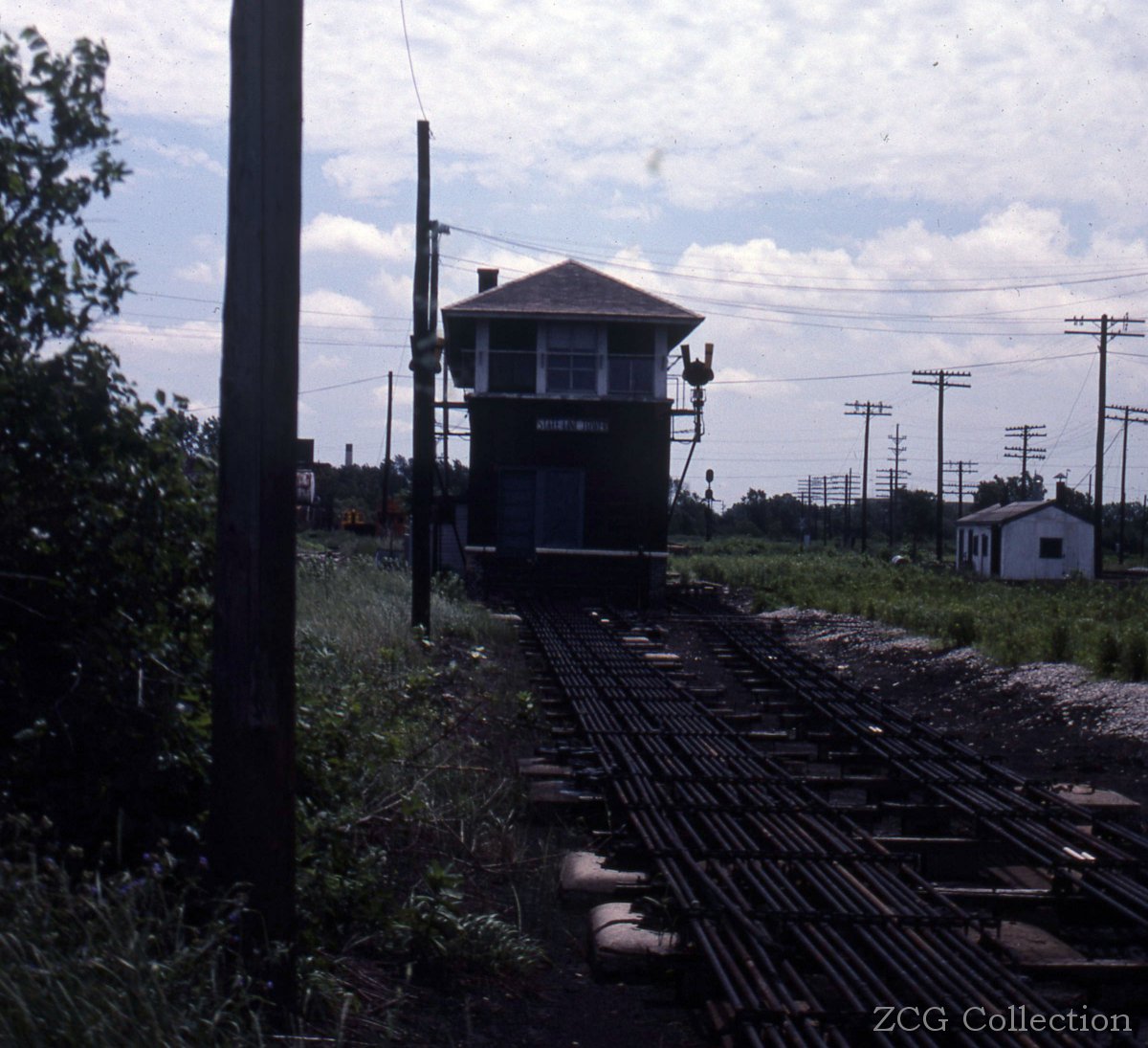 State Line Tower was build by the Chicago & Western Indiana Railroad in 1897. The interlocking sat on the Illinois and Indiana boarder, hence the name State Line. The tower was of brick and concrete and had a slate roof. The tower was 100 feet long and 16 feet wide. It housed a 224 mechanical lever machine made by the National Switch & Signal Company of Easton, Pa. At the time of installation in 1897 the machine had 136 levers in service, 20 spare levers and 68 spare spaces. The locking bed was of vertical type and was on the front and back of the interlocking machine. The locking bed had over 900 locking dogs and had 2,500 feet of locking bars. Almost 62,000 feet of pipeline was used and 109,000 feet of wire used. The interlocking operated 62 signals, 68 switches, 70 facing point locks, 1 movable point frog, and 39 crossing bars. The longest pipeline for a signal was 2,492 feet and 1,242 feet for the switch. In 1910, 24 of the spare levers and spaces were put in service for the Kensington and Eastern Railroad which was expanding its tracks through the interlocking. Through the years tracks where removed and slowly the interlocking plant saw less and less traffic. The mechanical pipelines started being replaced by electric signals and electric switches. By 1985 the C&WI tracks had been removed and the IHB, B&OCT, CSS&SB, and the NYC&STL where the only railroads left at the interlocking. By the 1980's State Line Tower was under the ownership of the Indiana Harbor Belt Railroad. The tower was closed on August 5th, 2000 and was tore down the following October. Nothing remains at the site of the tower today, not even a hint of a tower foundation. |