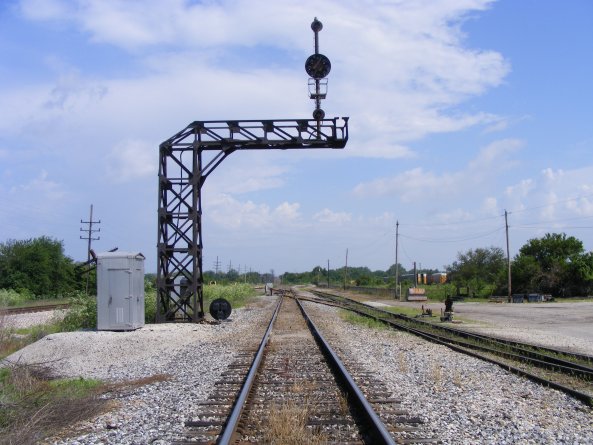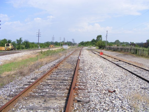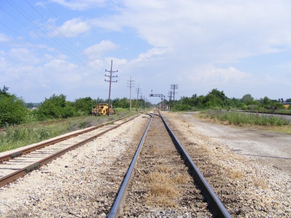 2008, looking north down the old CCC&StL line, Signal 5L should be to the left of the track but was stolen and was not yet replaced when I took this photo. The signal foundation can be seen further up the tracks as a round concrete foundation near the signal case.