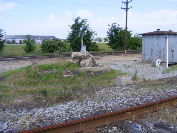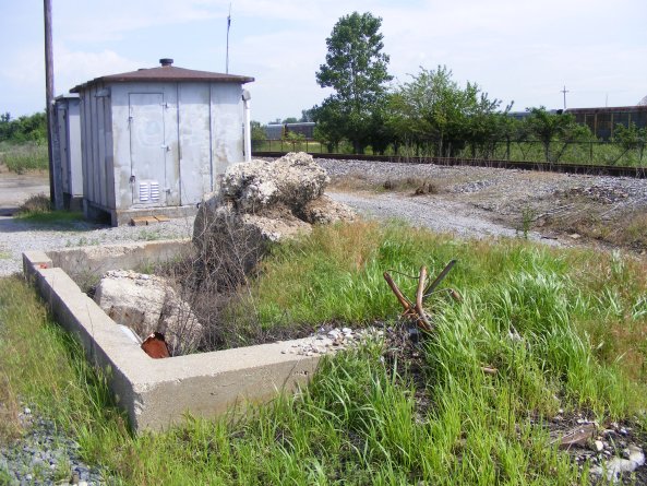 2008, all that remains of Wann Cabin is this concrete foundation. The steel signal cases where installed in 1940 with the GRS Electric Interlocking.