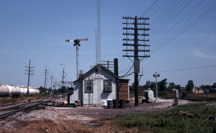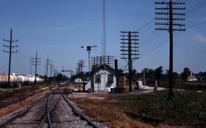 This photo was taken in July of 1976 and is looking North at the Cabin. The ex-Chicago and Alton lines to the left and the ex-CC&StL Railroad to the right.
