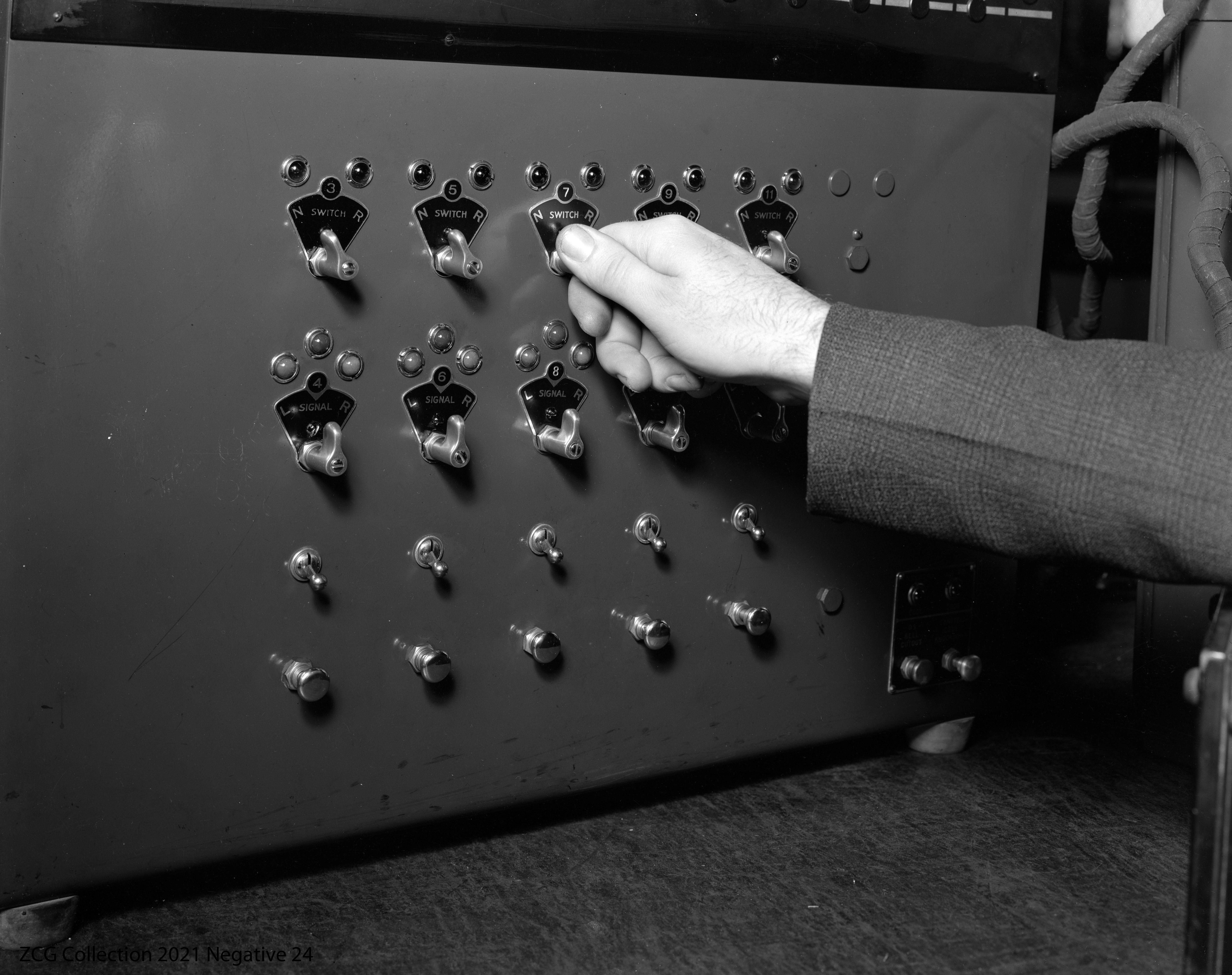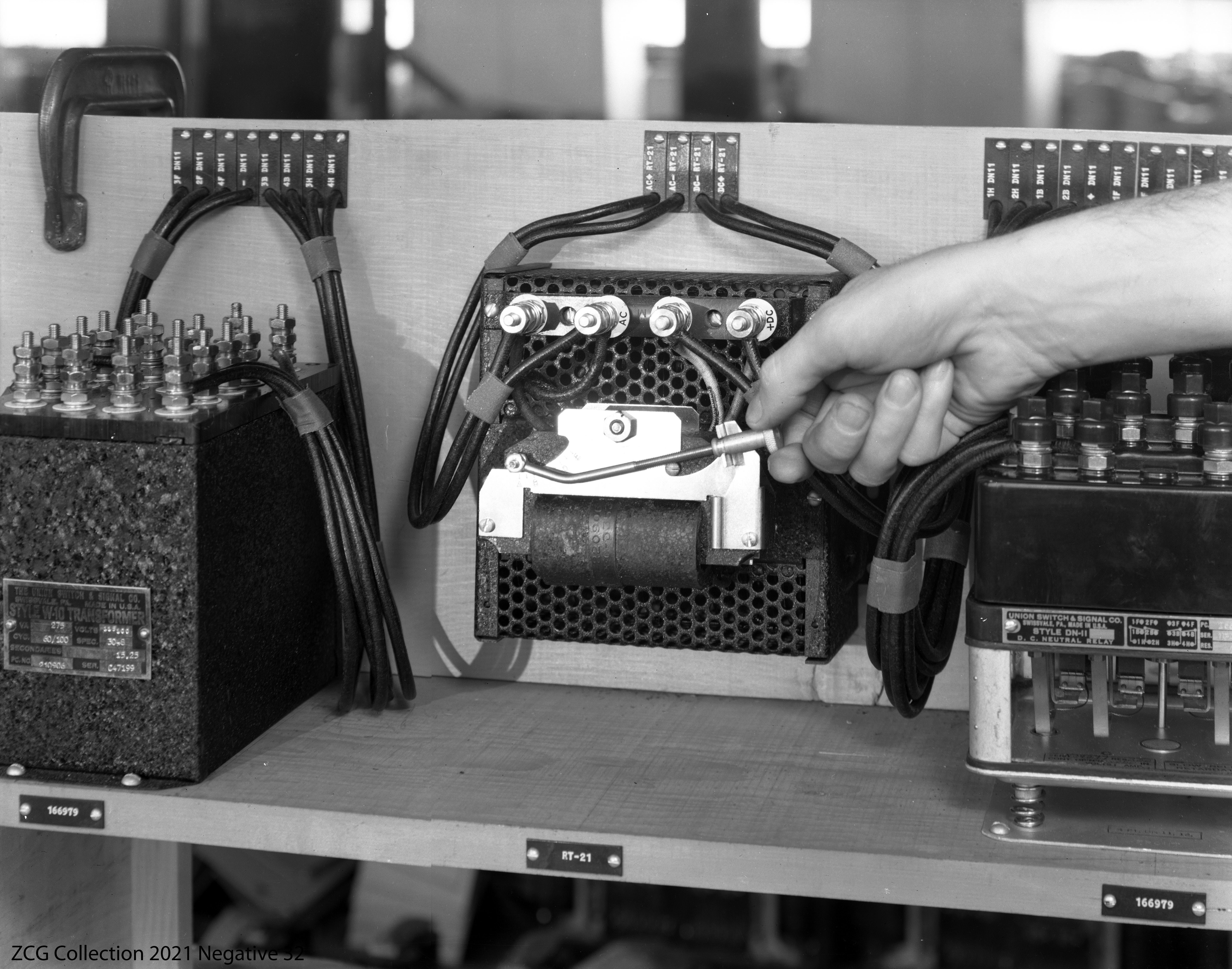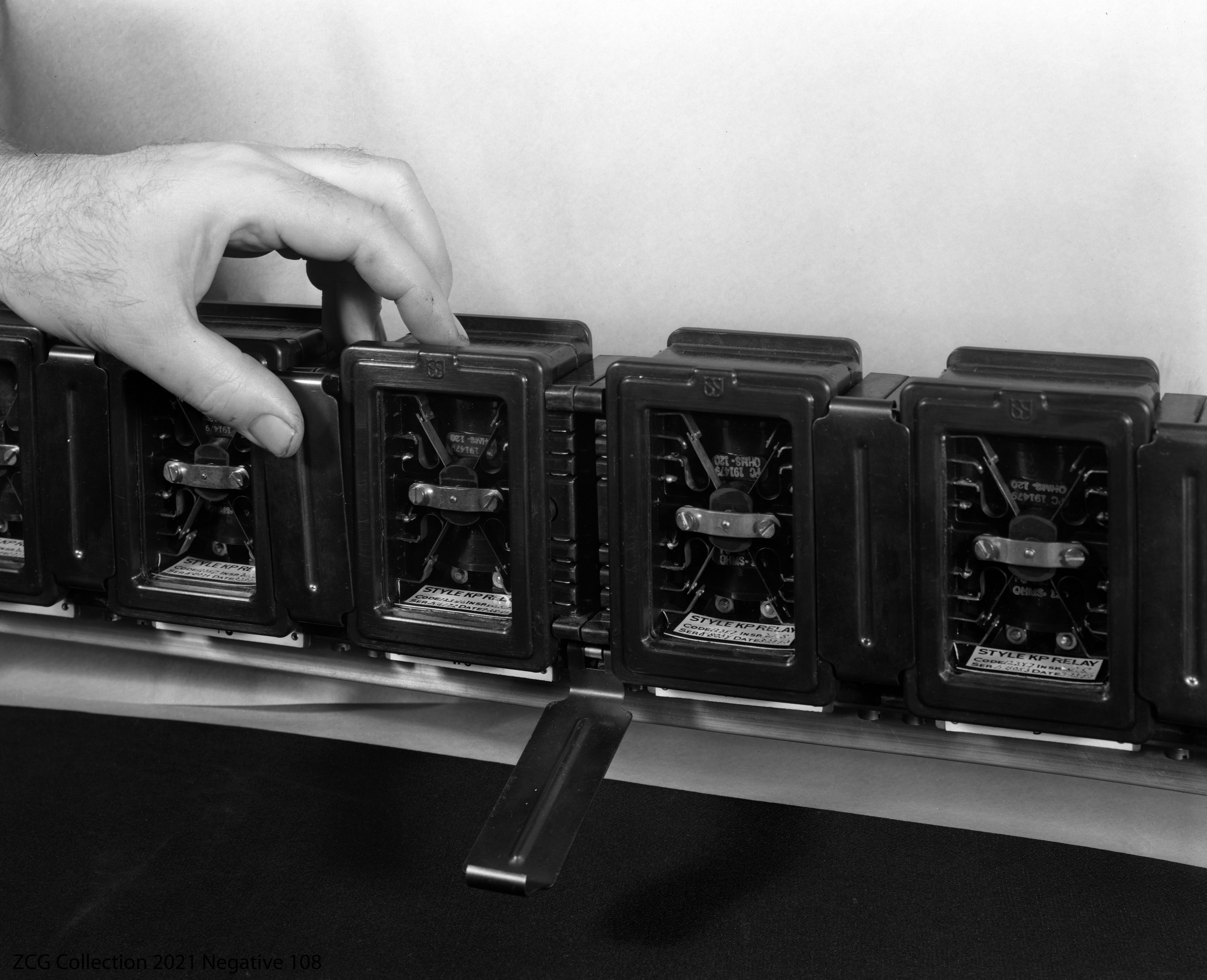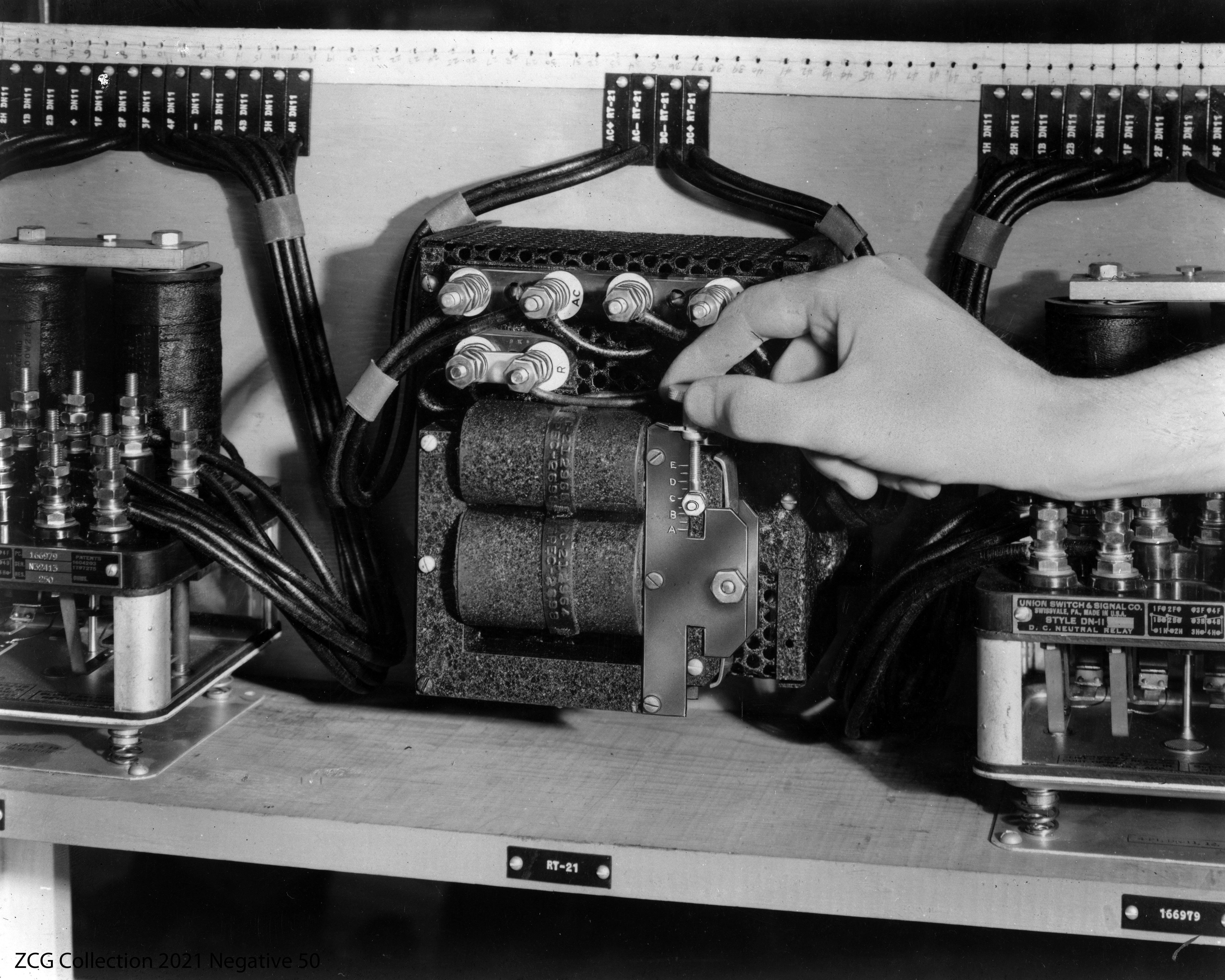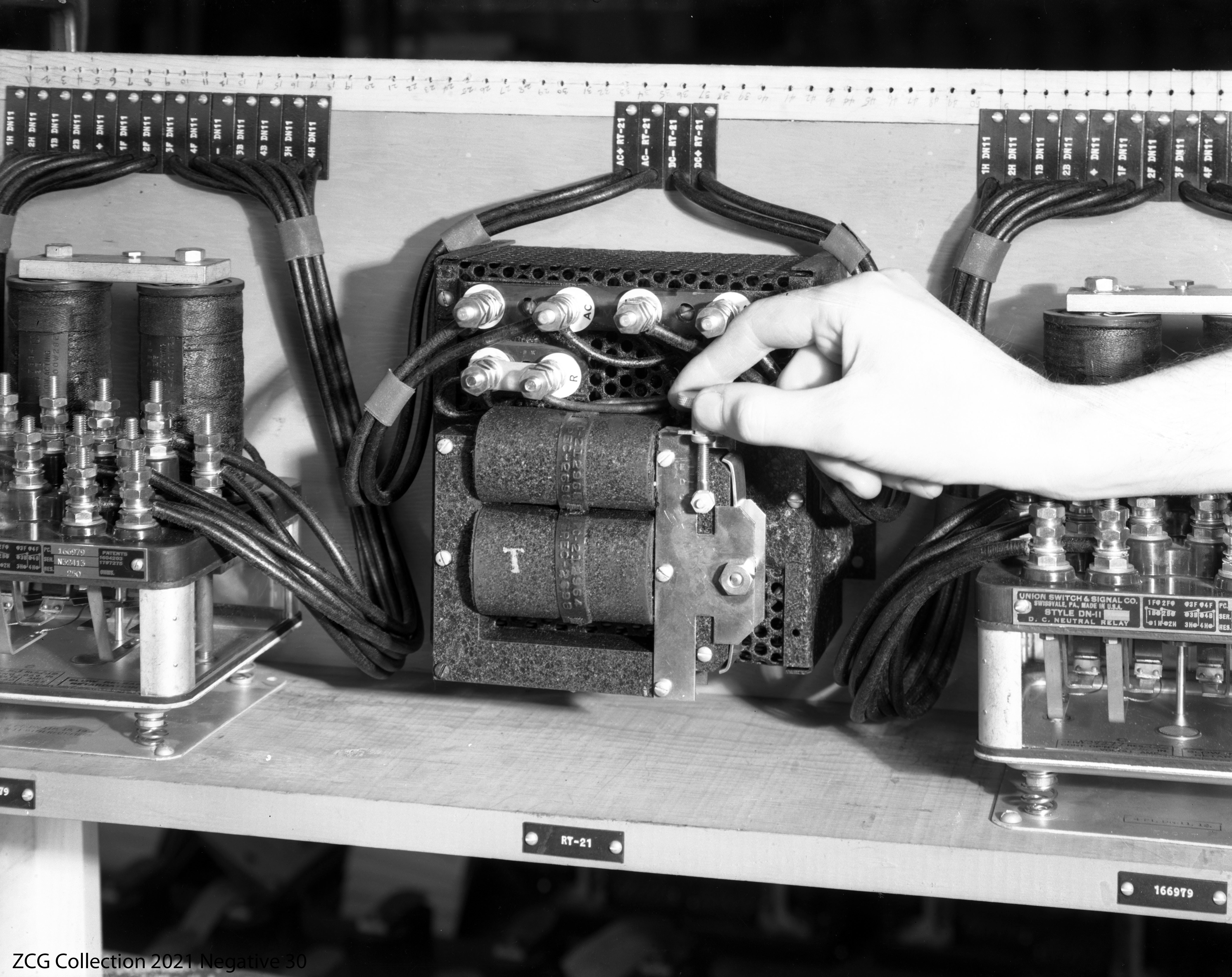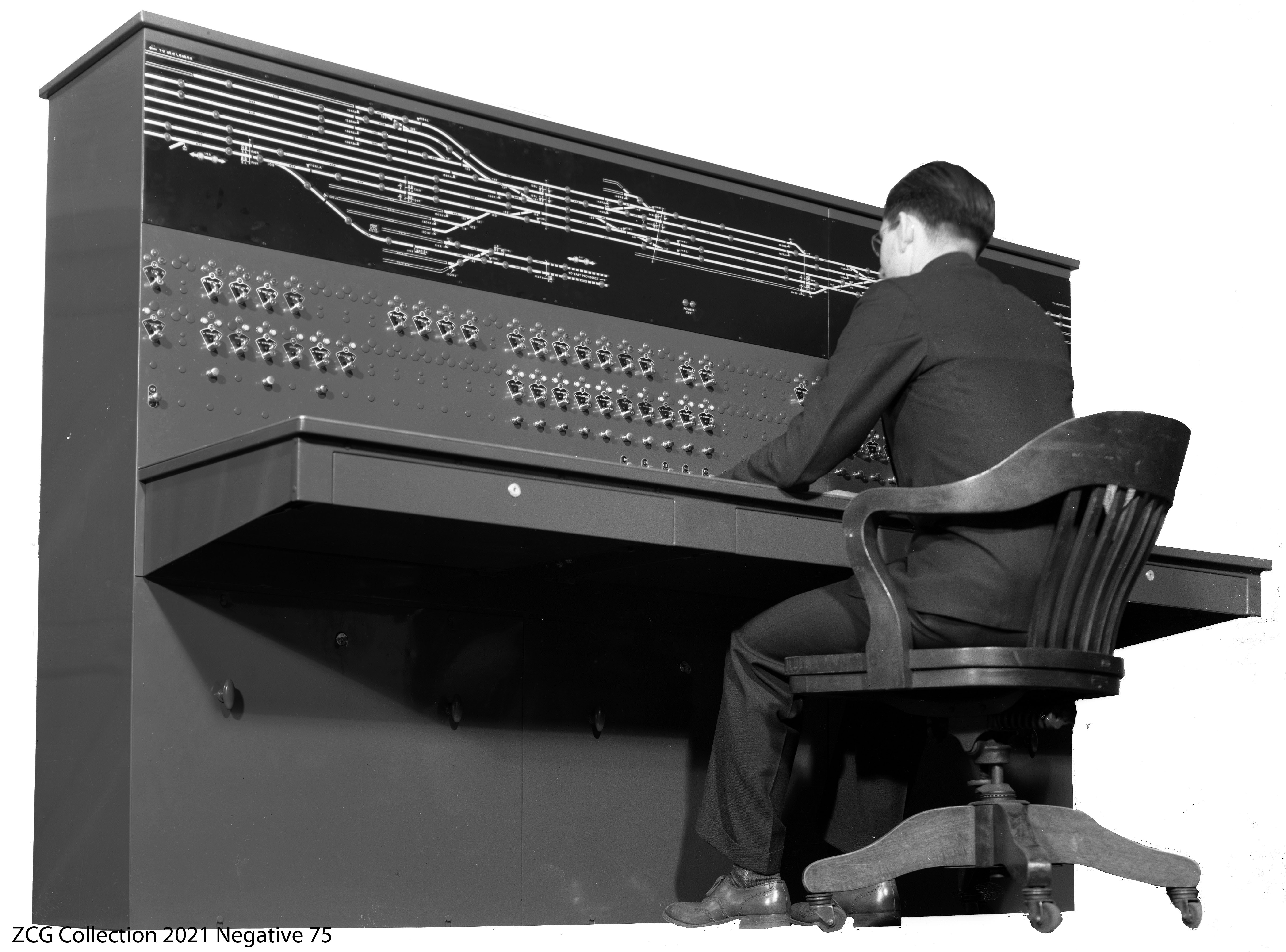 Close-Up of CTC Panel with Hand on Signal Lever |