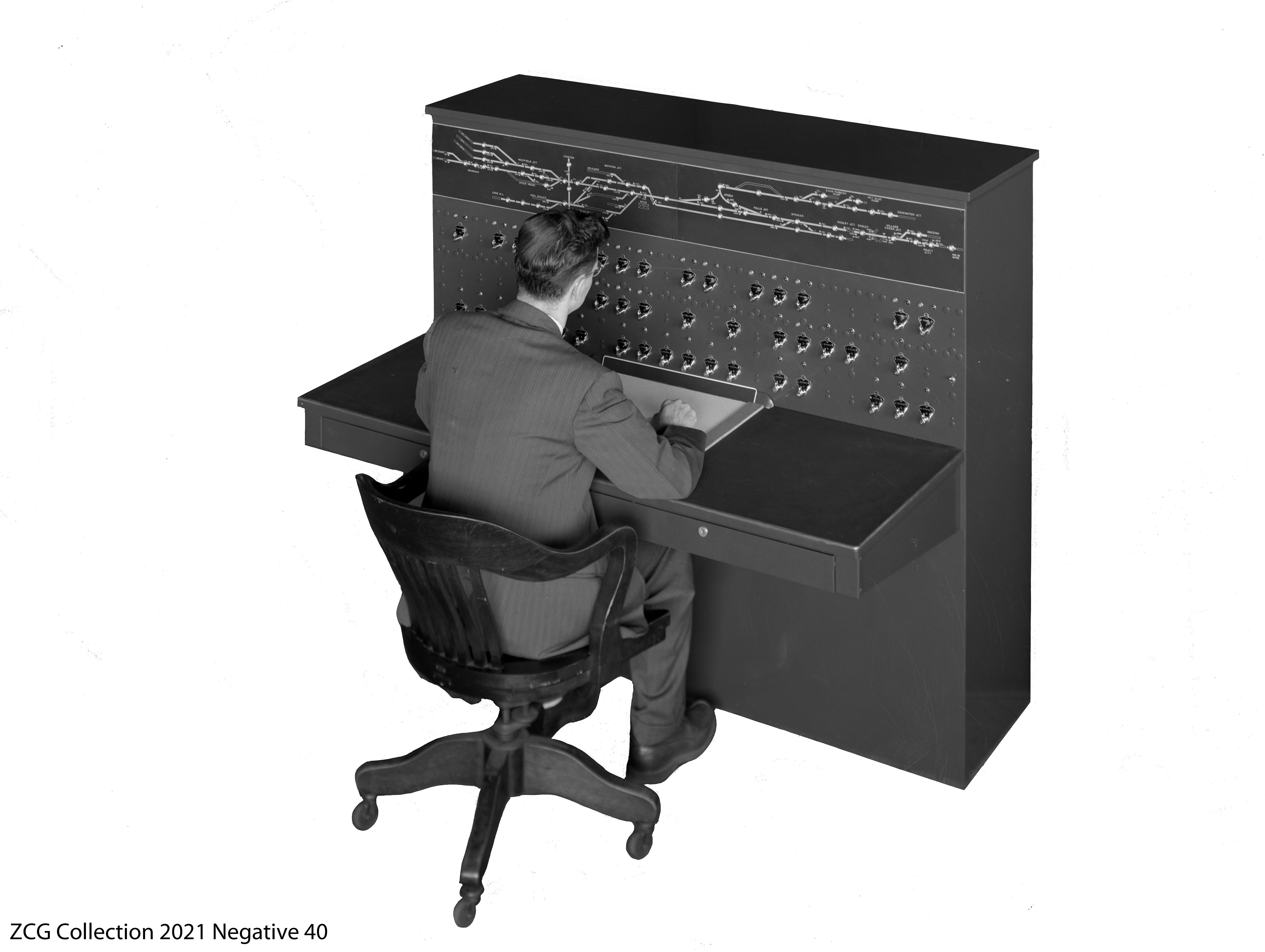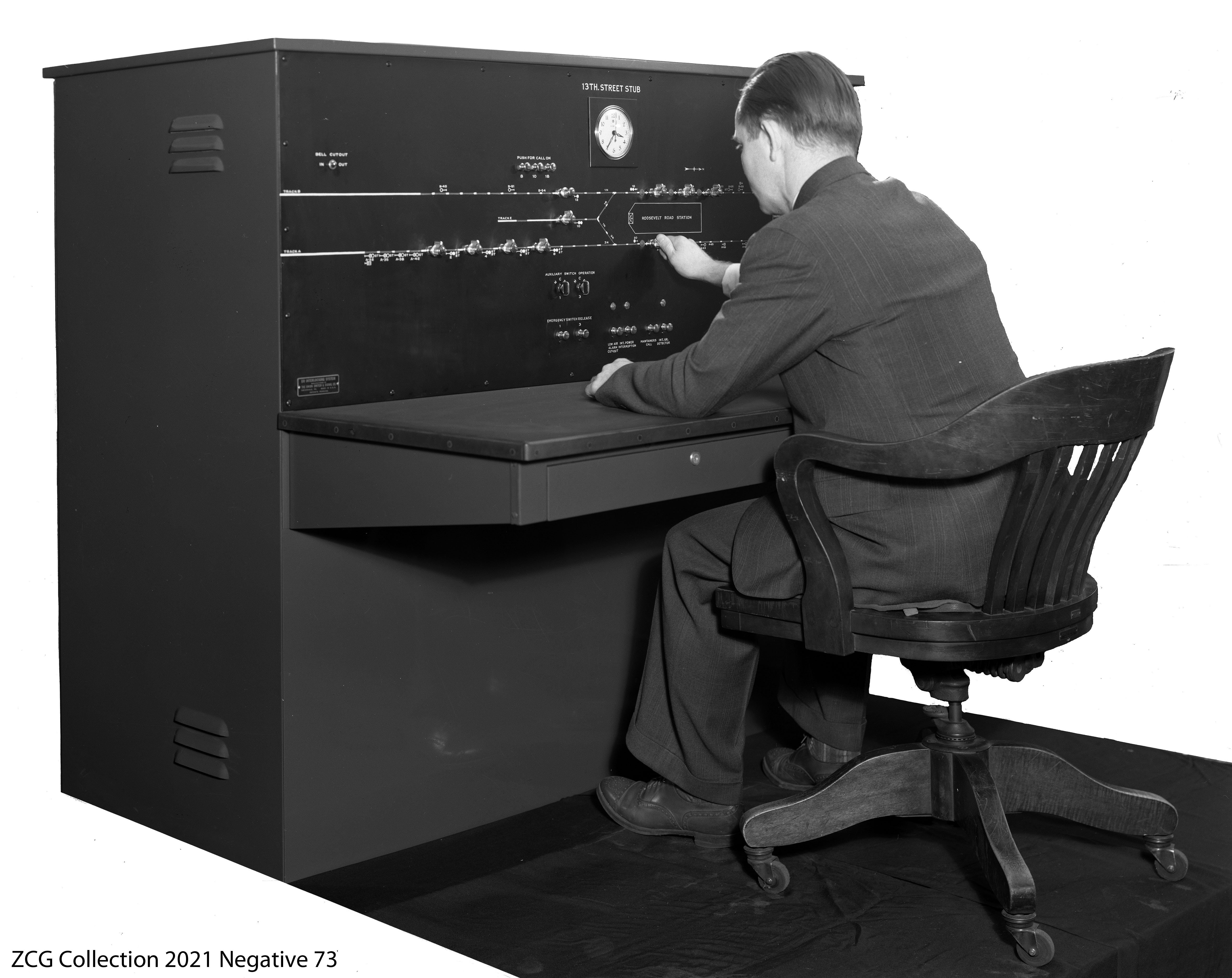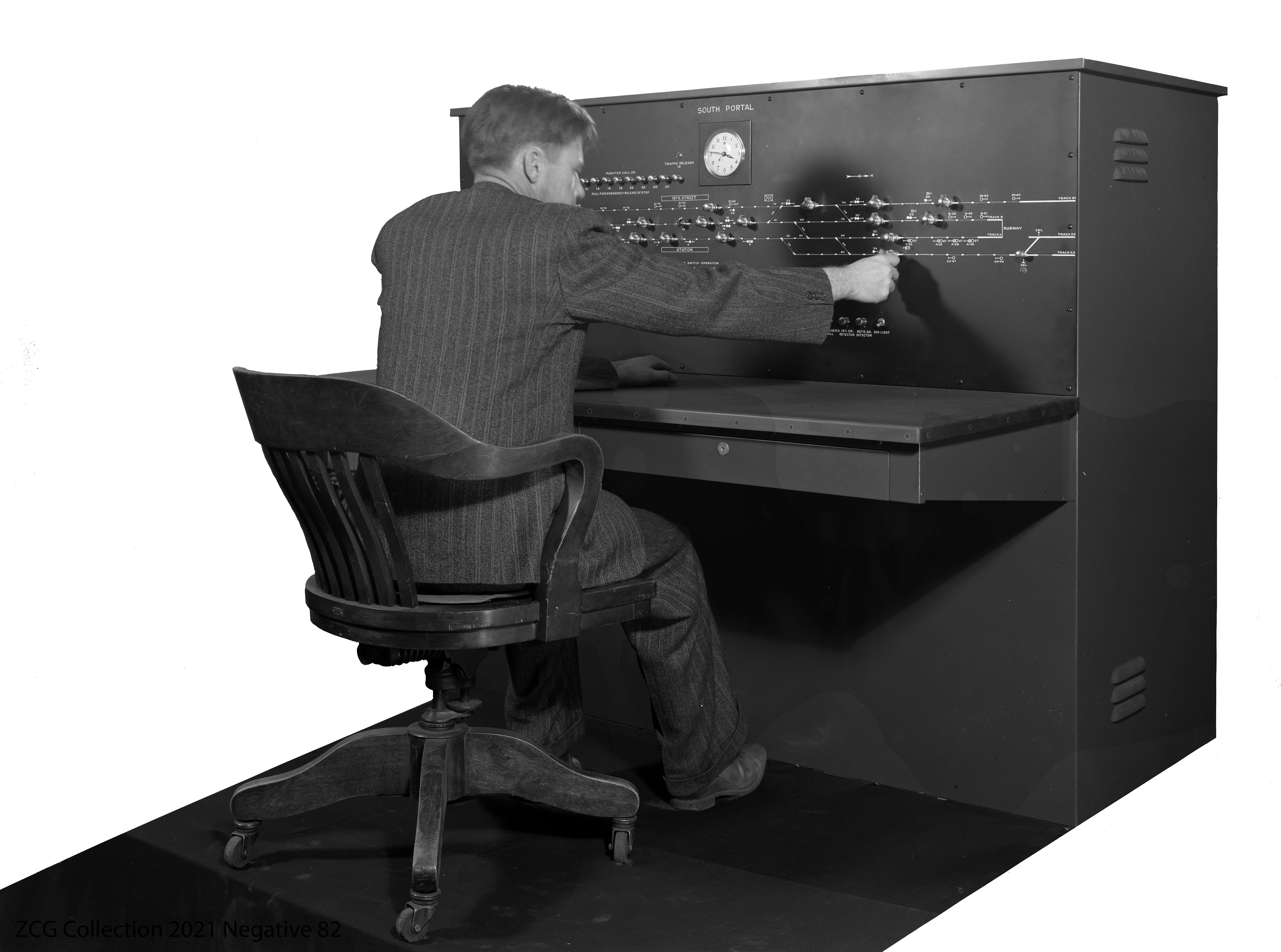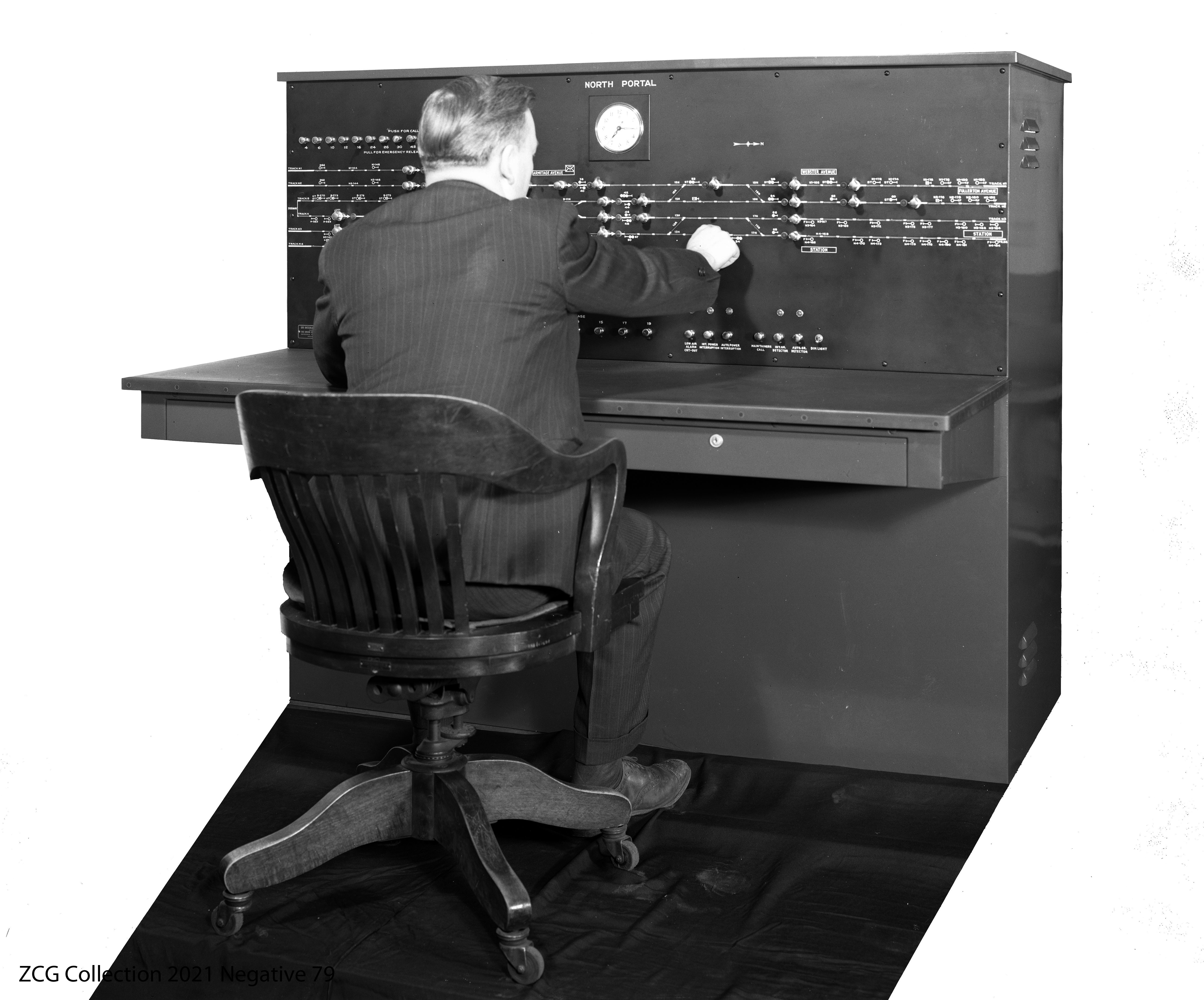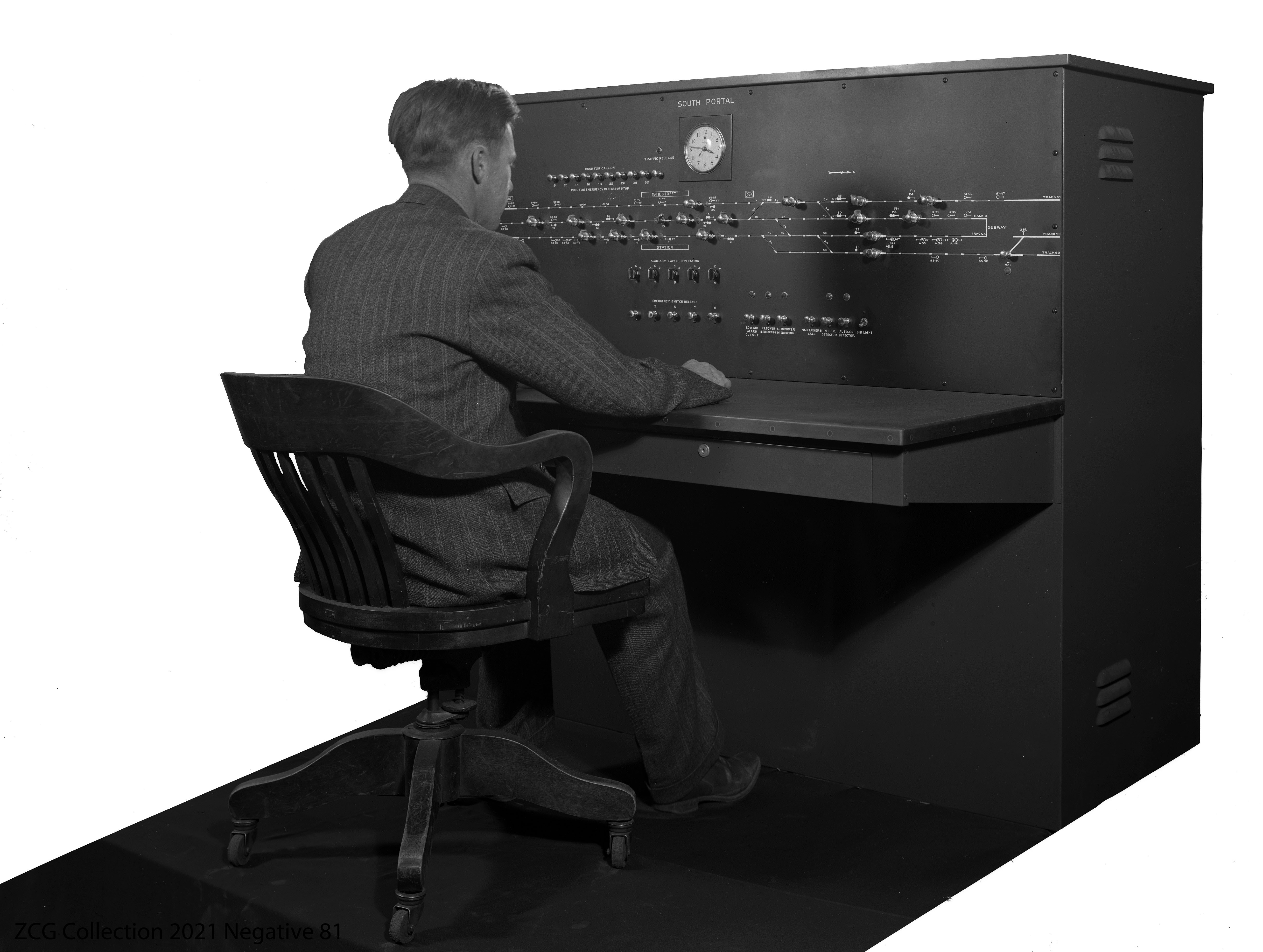 Close-Up of CTC Panel with Hand on Signal Lever |