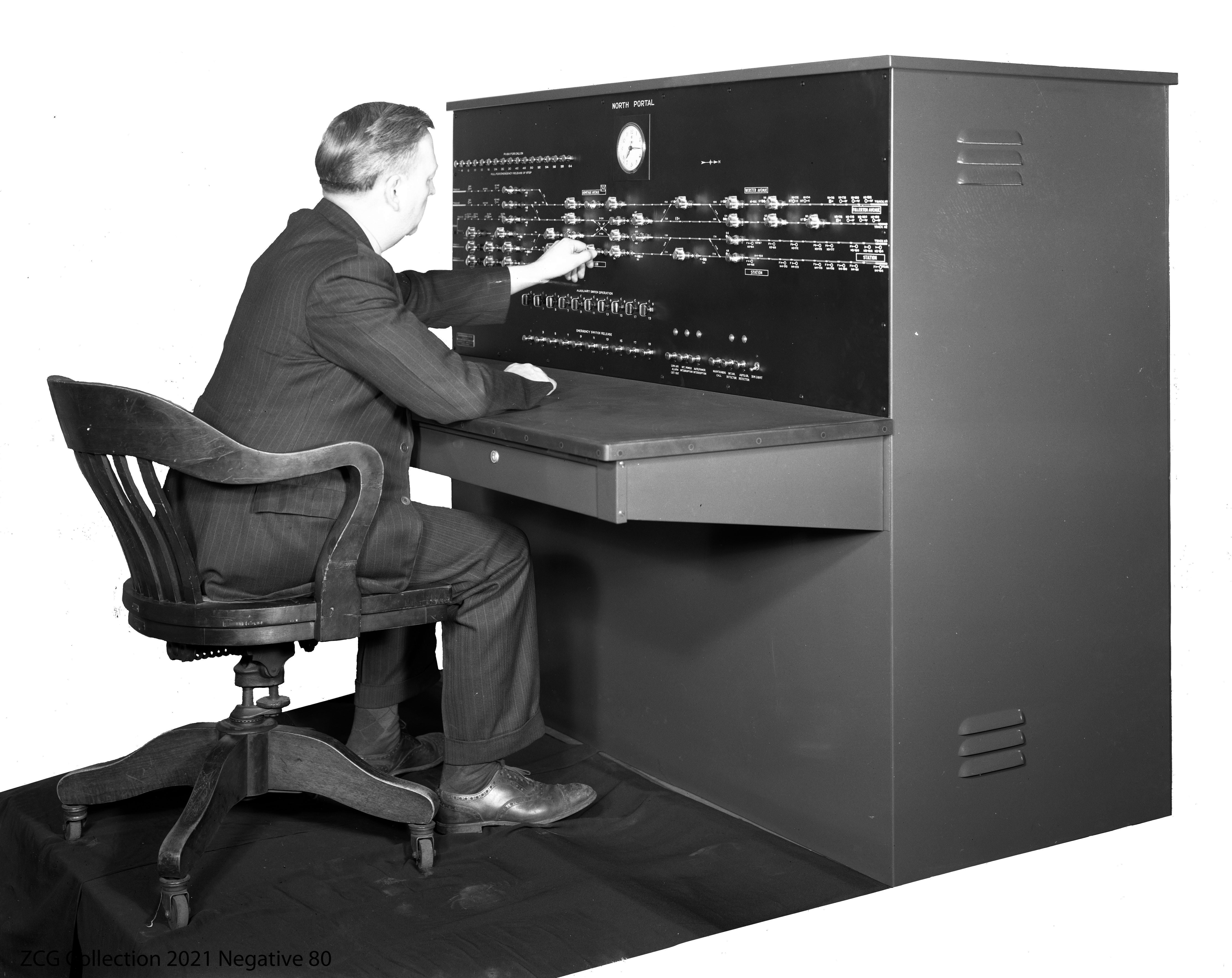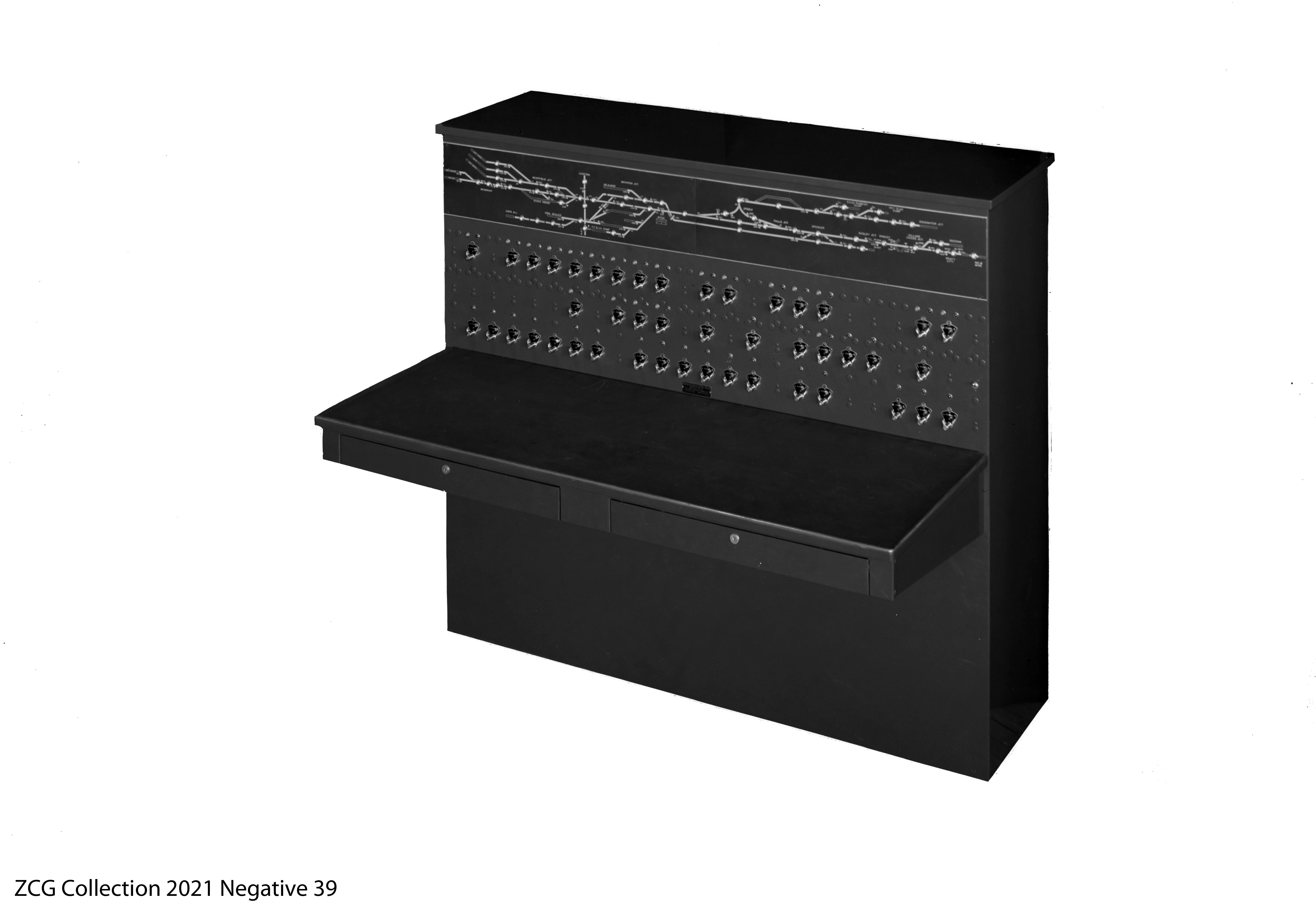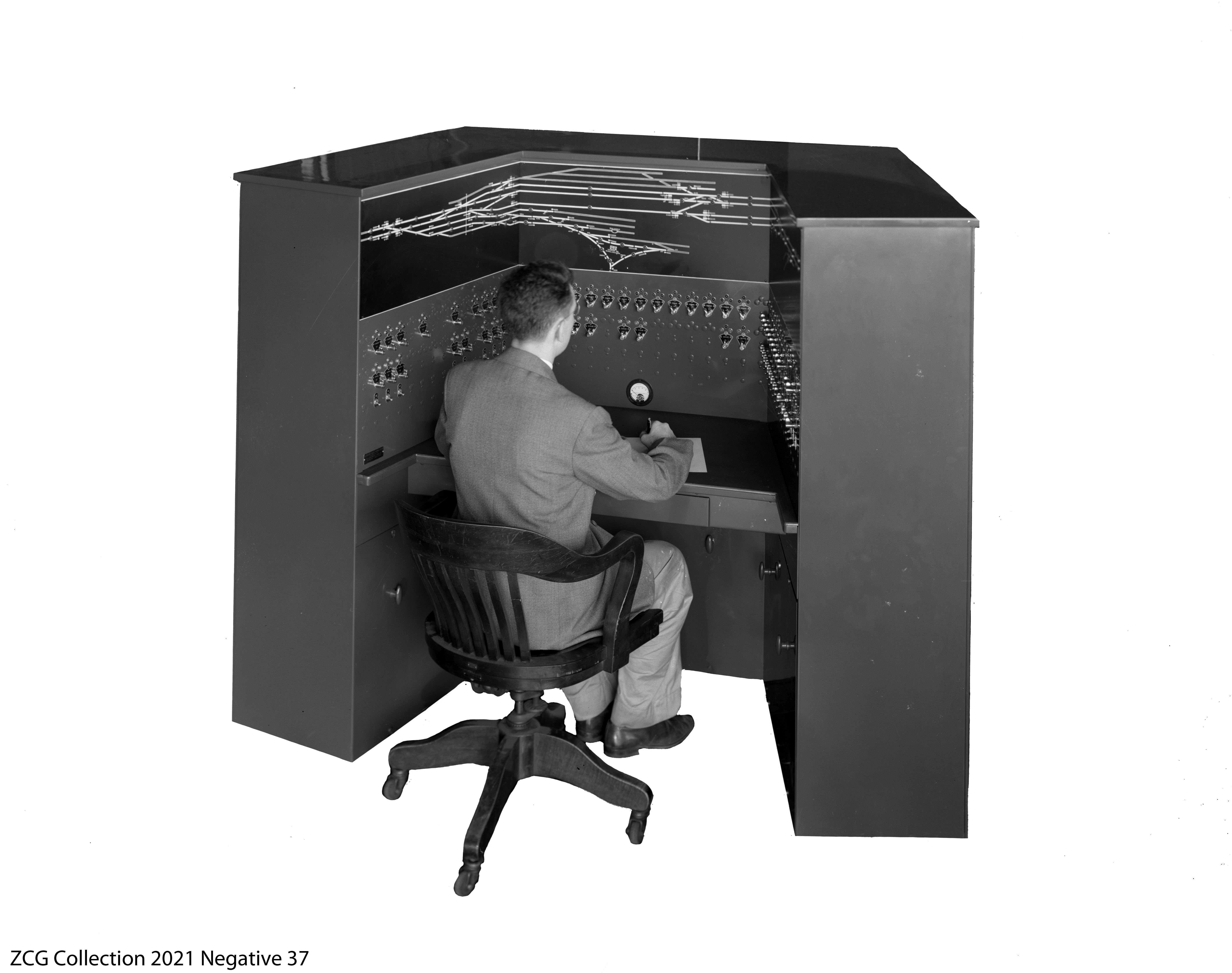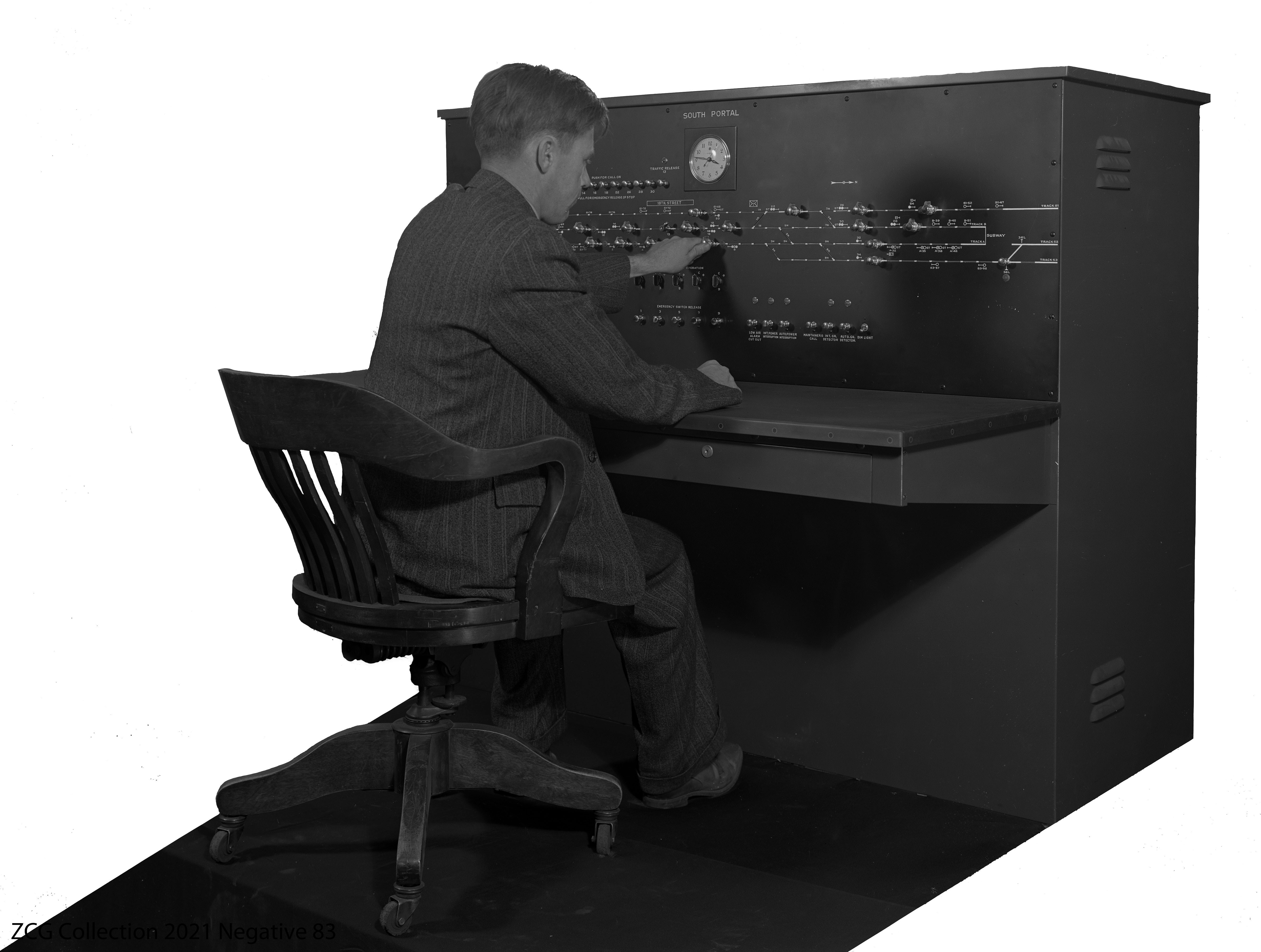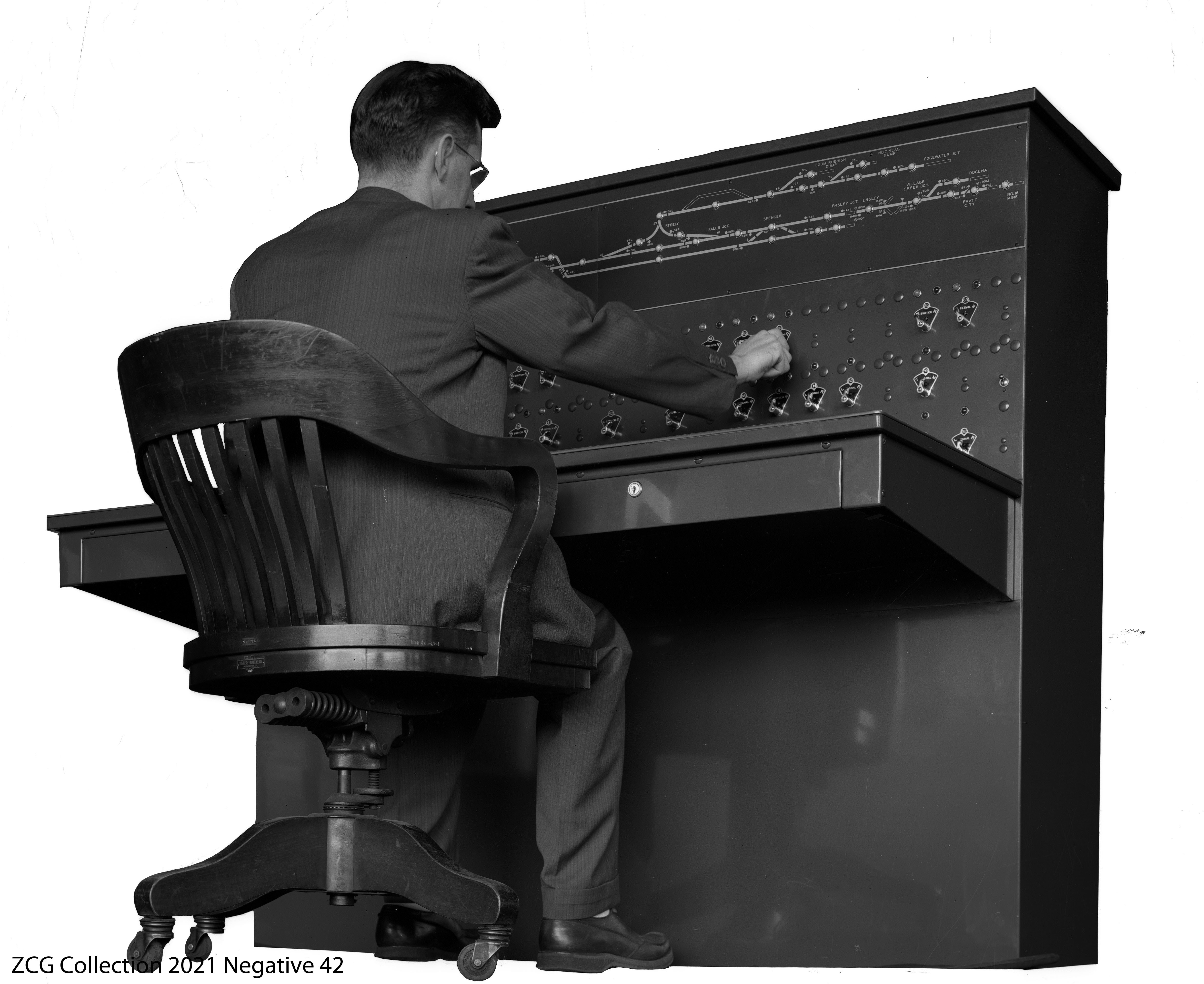 Close-Up of CTC Panel with Hand on Signal Lever |