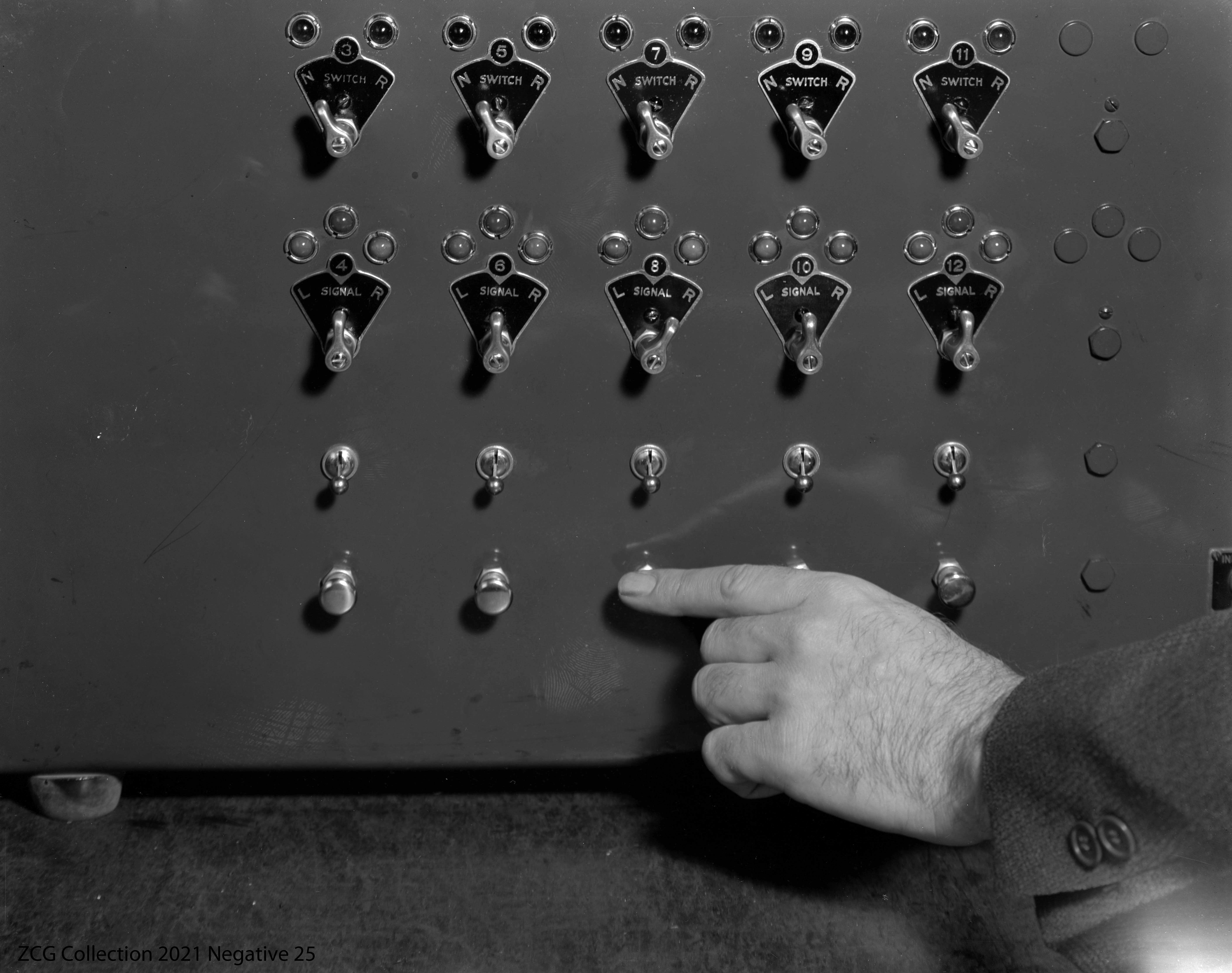 Close-Up of CTC Panel with Hand on Switch Lever |