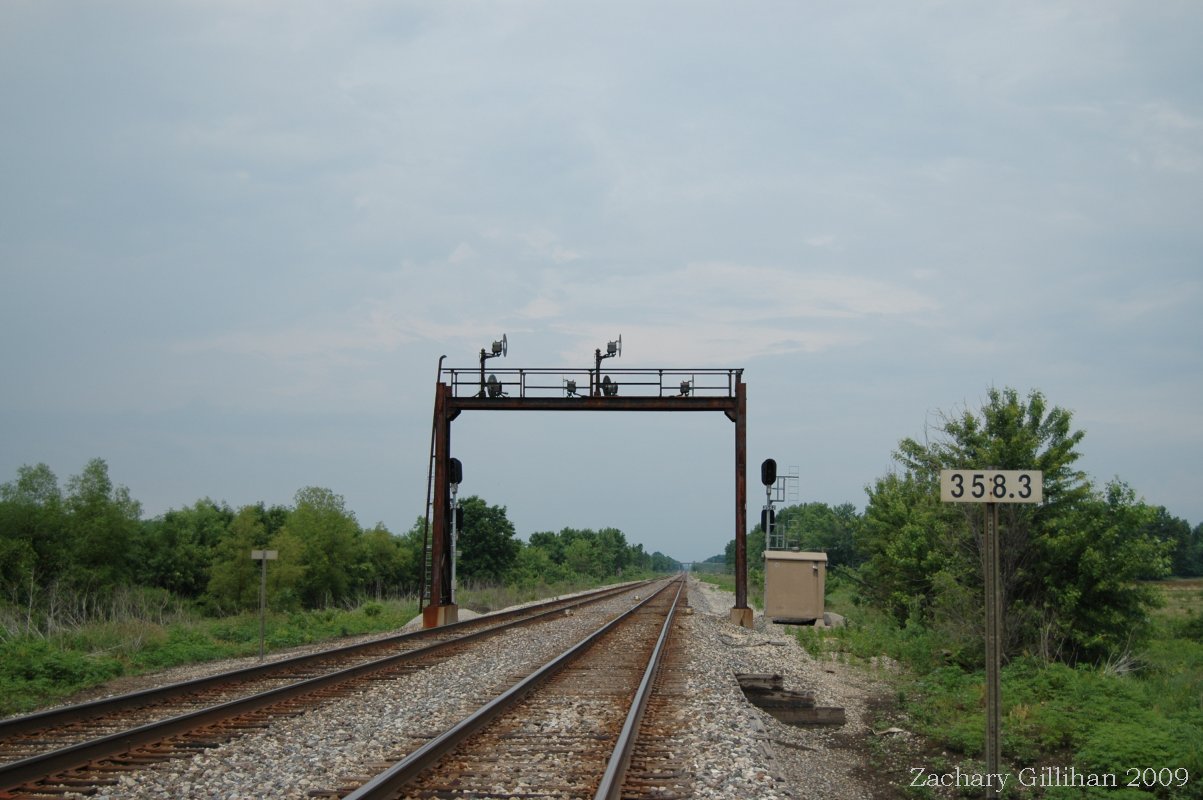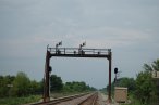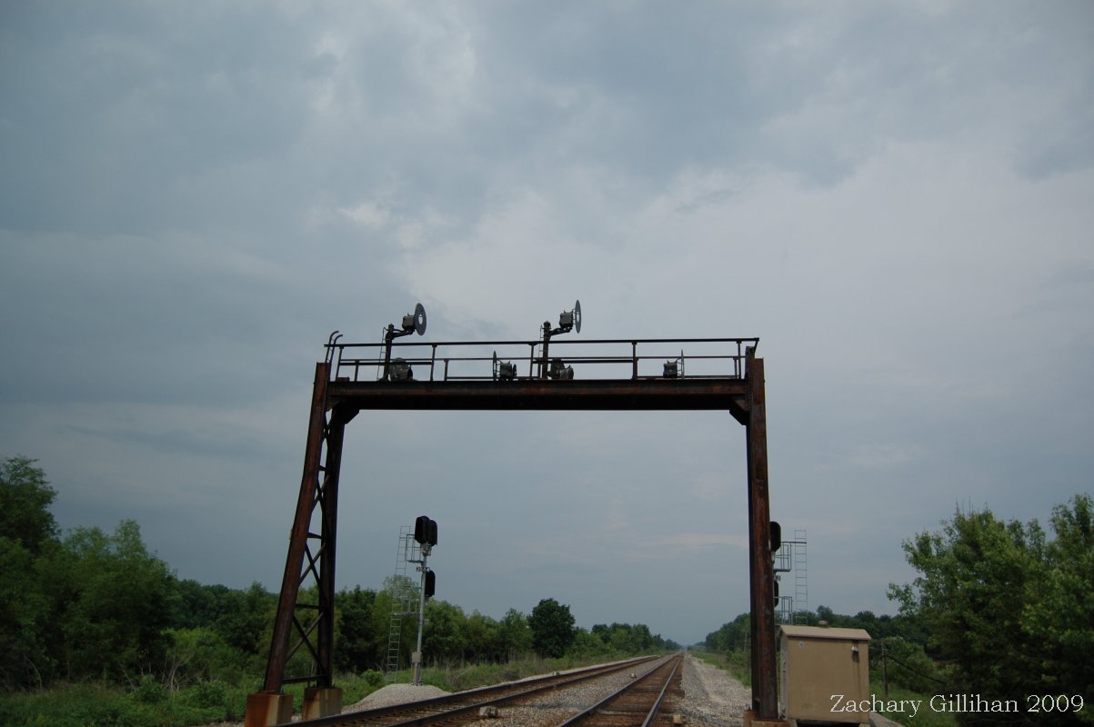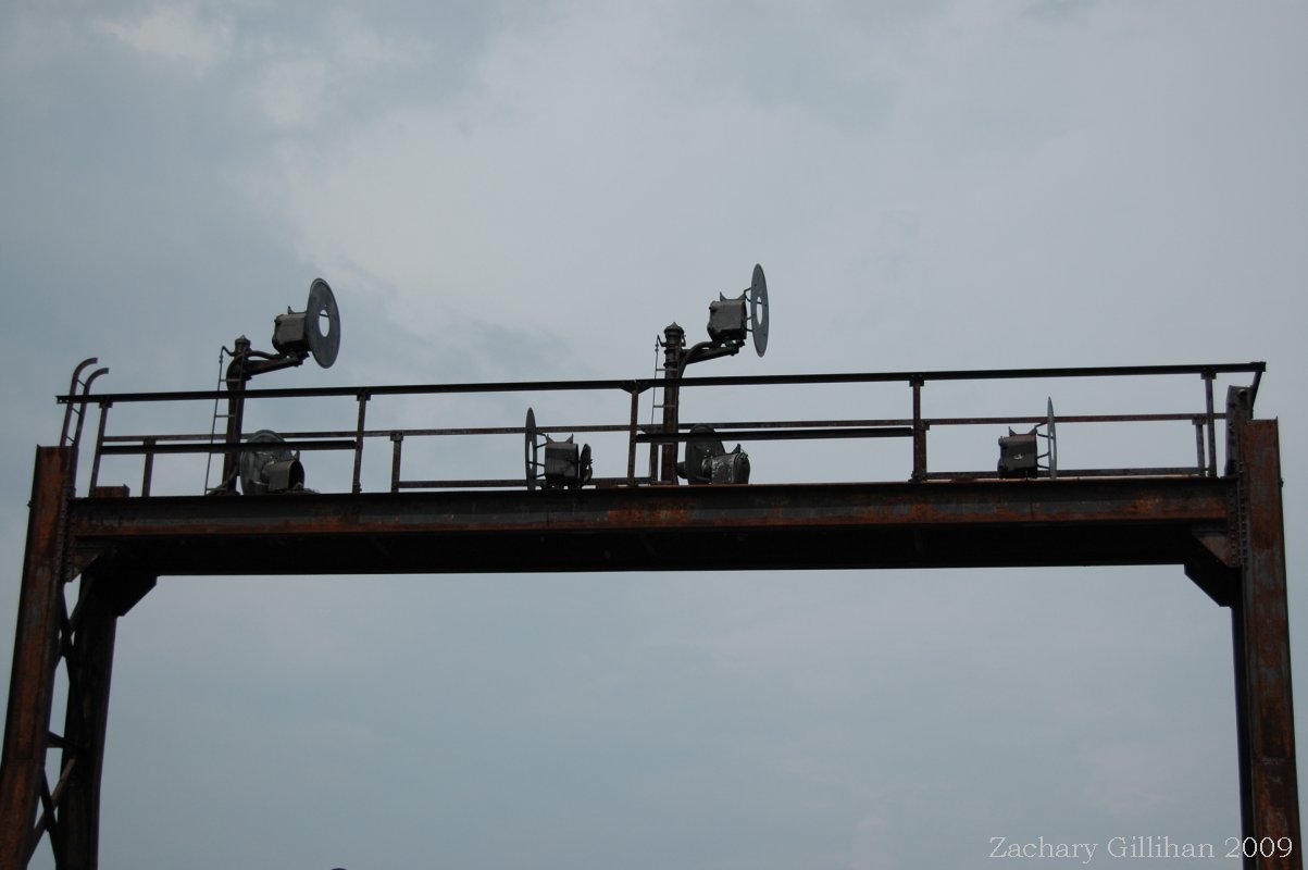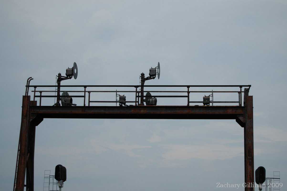 These signals have been replaced with new safetran signal heads. The bridge still stands with the signal heads turned. The mechs are not in the signal heads and the lens barrel and hoods have been removed from the signals. Probably saved for replacement parts for the many other signal bridges with H-5 signals. The H-2 signal heads are about complete just the mechs are missing. Im sure this will soon be removed as the safetran signals look to have been installed recently.