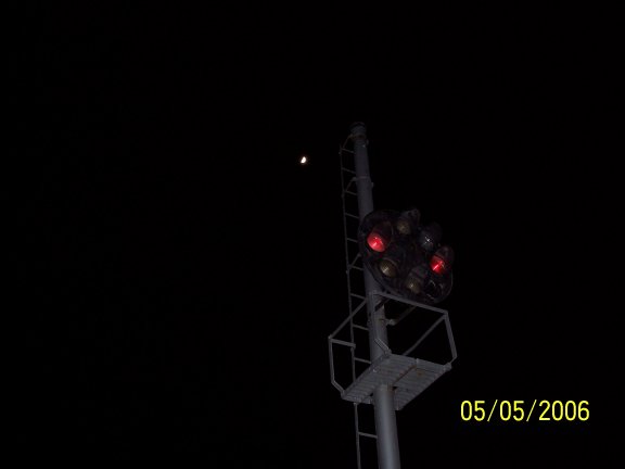 General Railway Signal Co Color Position Signal Union Pacific Williamsville Illinois, May 5th 2006 These are soon to be replaced. Displays Red with the moon in the back. |